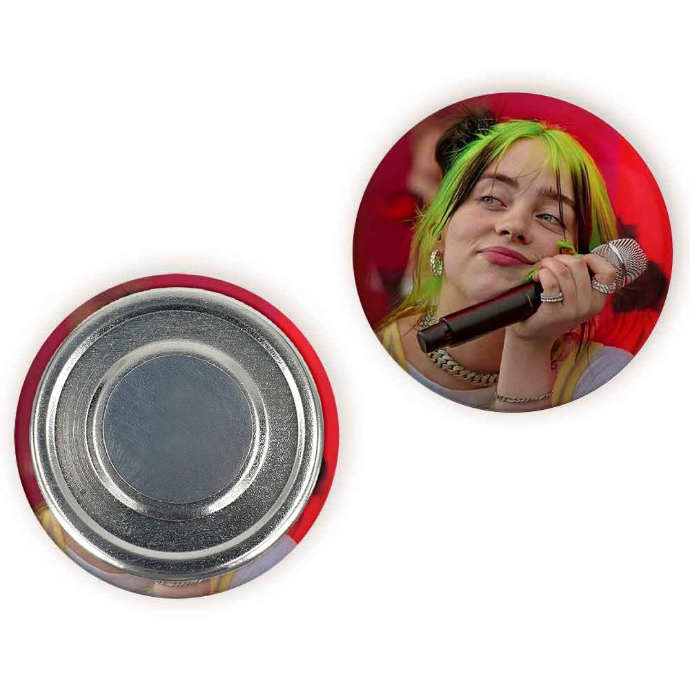 مگنت بیلی آیلیش Billie Eilish خندالو با روکش سلفون مات مخملی ضدخش و قطعه پشتی فلزی تولید شده است که آهنربای اتمی بکار برده شده در محصول، بصورت مخفی تعبیه شده ودیده نمی شود. ضمن اینکه گیرایی بسیار بالایی داشته و به هیچ عنوان از روی یخچال نمی افتد.