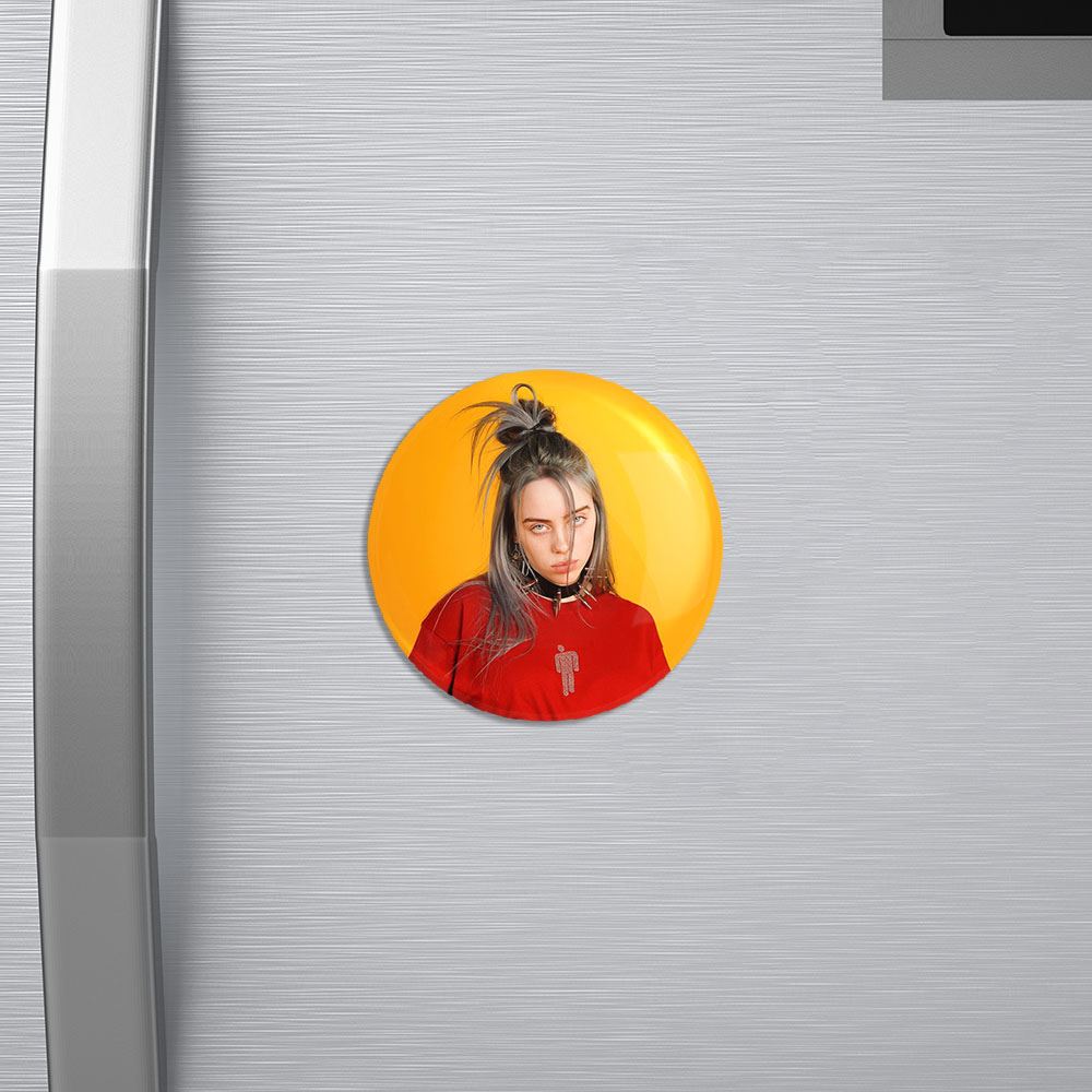 مگنت بیلی آیلیش Billie Eilish خندالو با روکش سلفون مات مخملی ضدخش و قطعه پشتی فلزی تولید شده است که آهنربای اتمی بکار برده شده در محصول، بصورت مخفی تعبیه شده ودیده نمی شود. ضمن اینکه گیرایی بسیار بالایی داشته و به هیچ عنوان از روی یخچال نمی افتد.