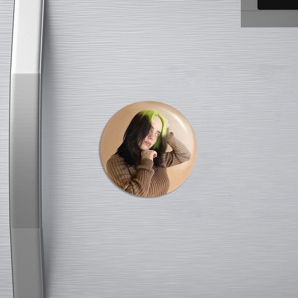مگنت بیلی آیلیش Billie Eilish خندالو با روکش سلفون مات مخملی ضدخش و قطعه پشتی فلزی تولید شده است که آهنربای اتمی بکار برده شده در محصول، بصورت مخفی تعبیه شده ودیده نمی شود. ضمن اینکه گیرایی بسیار بالایی داشته و به هیچ عنوان از روی یخچال نمی افتد.