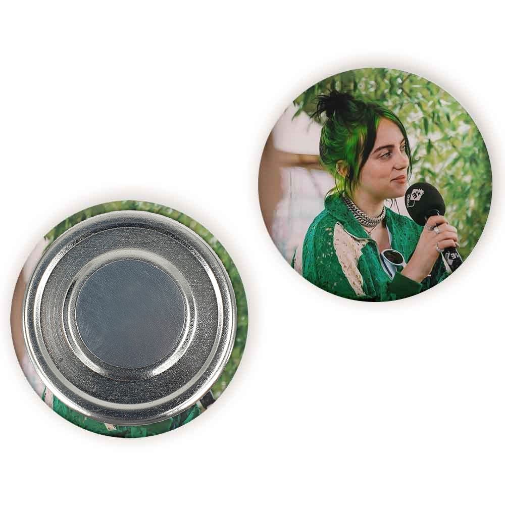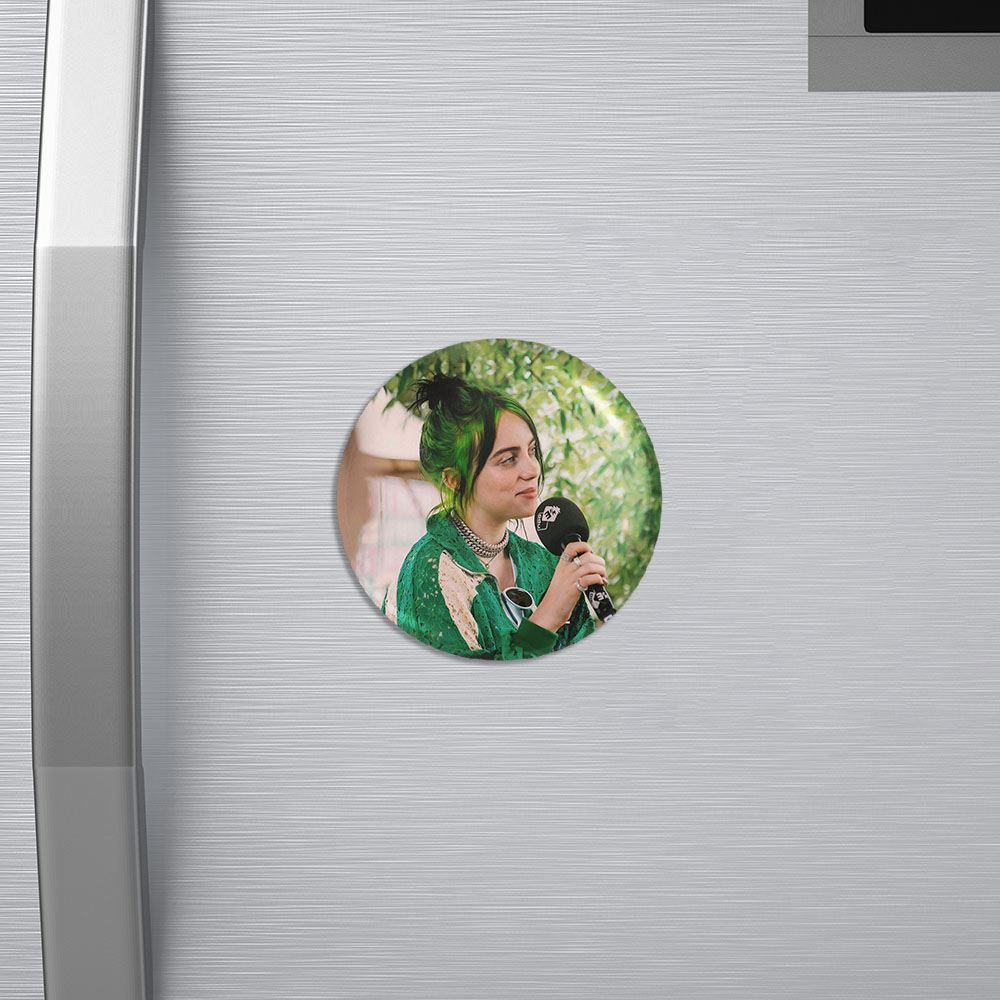 مگنت بیلی آیلیش Billie Eilish خندالو با روکش سلفون مات مخملی ضدخش و قطعه پشتی فلزی تولید شده است که آهنربای اتمی بکار برده شده در محصول، بصورت مخفی تعبیه شده ودیده نمی شود. ضمن اینکه گیرایی بسیار بالایی داشته و به هیچ عنوان از روی یخچال نمی افتد.