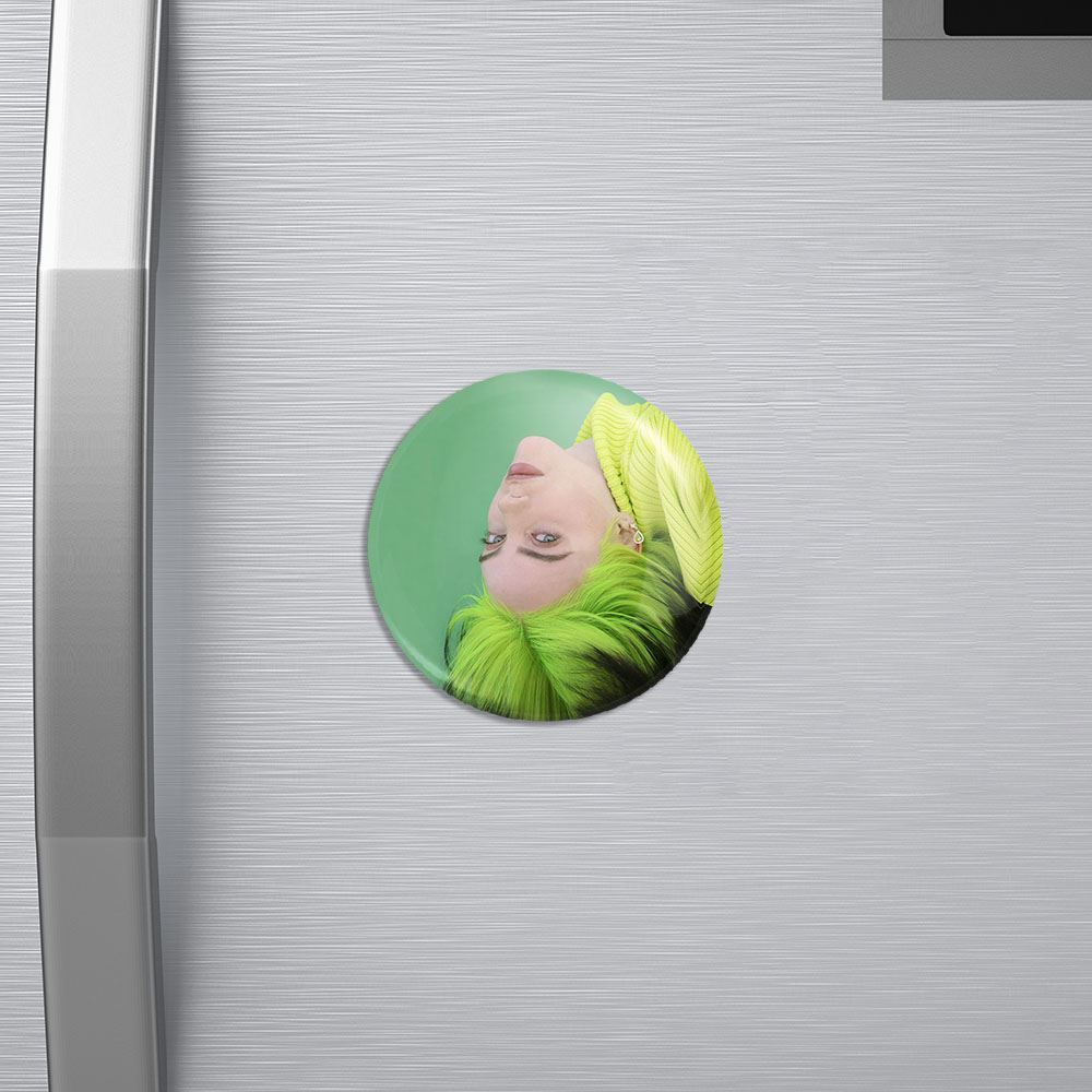 مگنت بیلی آیلیش Billie Eilish خندالو با روکش سلفون مات مخملی ضدخش و قطعه پشتی فلزی تولید شده است که آهنربای اتمی بکار برده شده در محصول، بصورت مخفی تعبیه شده ودیده نمی شود. ضمن اینکه گیرایی بسیار بالایی داشته و به هیچ عنوان از روی یخچال نمی افتد.
