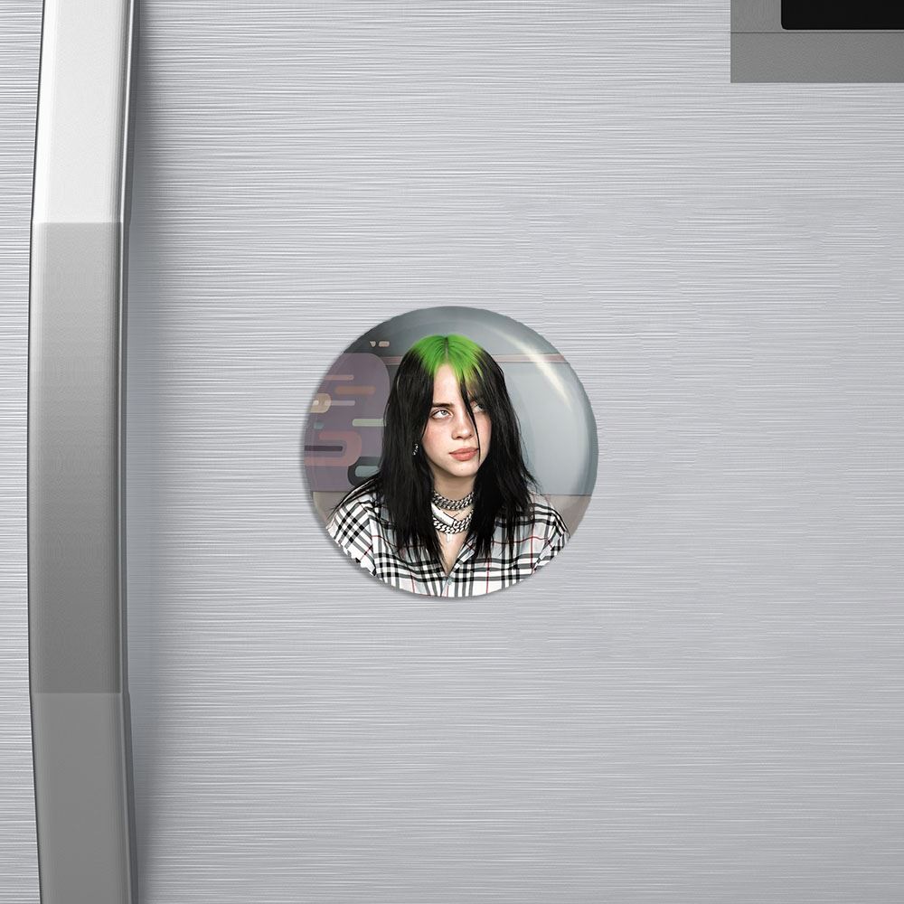 مگنت بیلی آیلیش Billie Eilish خندالو با روکش سلفون مات مخملی ضدخش و قطعه پشتی فلزی تولید شده است که آهنربای اتمی بکار برده شده در محصول، بصورت مخفی تعبیه شده ودیده نمی شود. ضمن اینکه گیرایی بسیار بالایی داشته و به هیچ عنوان از روی یخچال نمی افتد.