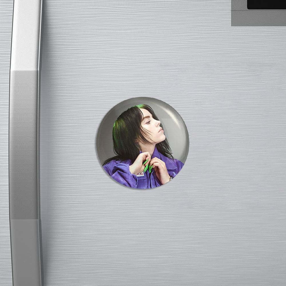 مگنت بیلی آیلیش Billie Eilish خندالو با روکش سلفون مات مخملی ضدخش و قطعه پشتی فلزی تولید شده است که آهنربای اتمی بکار برده شده در محصول، بصورت مخفی تعبیه شده ودیده نمی شود. ضمن اینکه گیرایی بسیار بالایی داشته و به هیچ عنوان از روی یخچال نمی افتد.