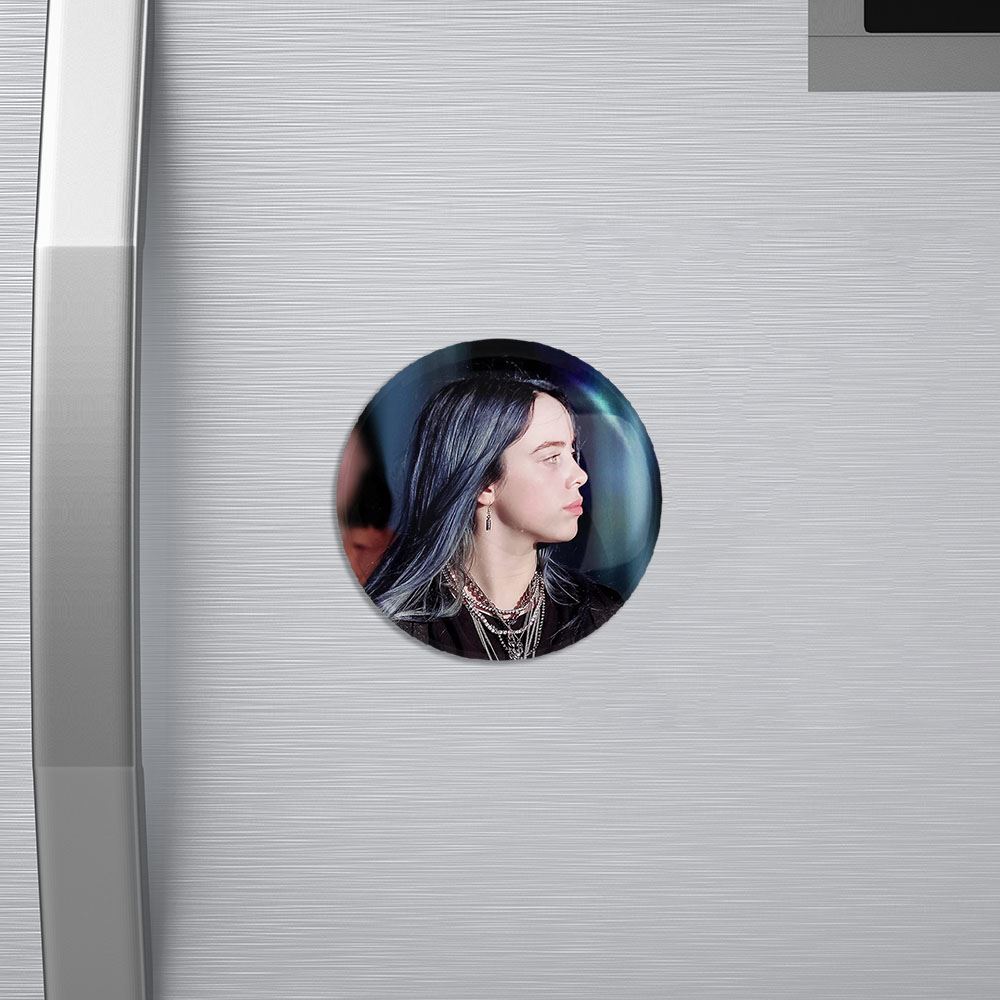 مگنت بیلی آیلیش Billie Eilish خندالو با روکش سلفون مات مخملی ضدخش و قطعه پشتی فلزی تولید شده است که آهنربای اتمی بکار برده شده در محصول، بصورت مخفی تعبیه شده ودیده نمی شود. ضمن اینکه گیرایی بسیار بالایی داشته و به هیچ عنوان از روی یخچال نمی افتد.