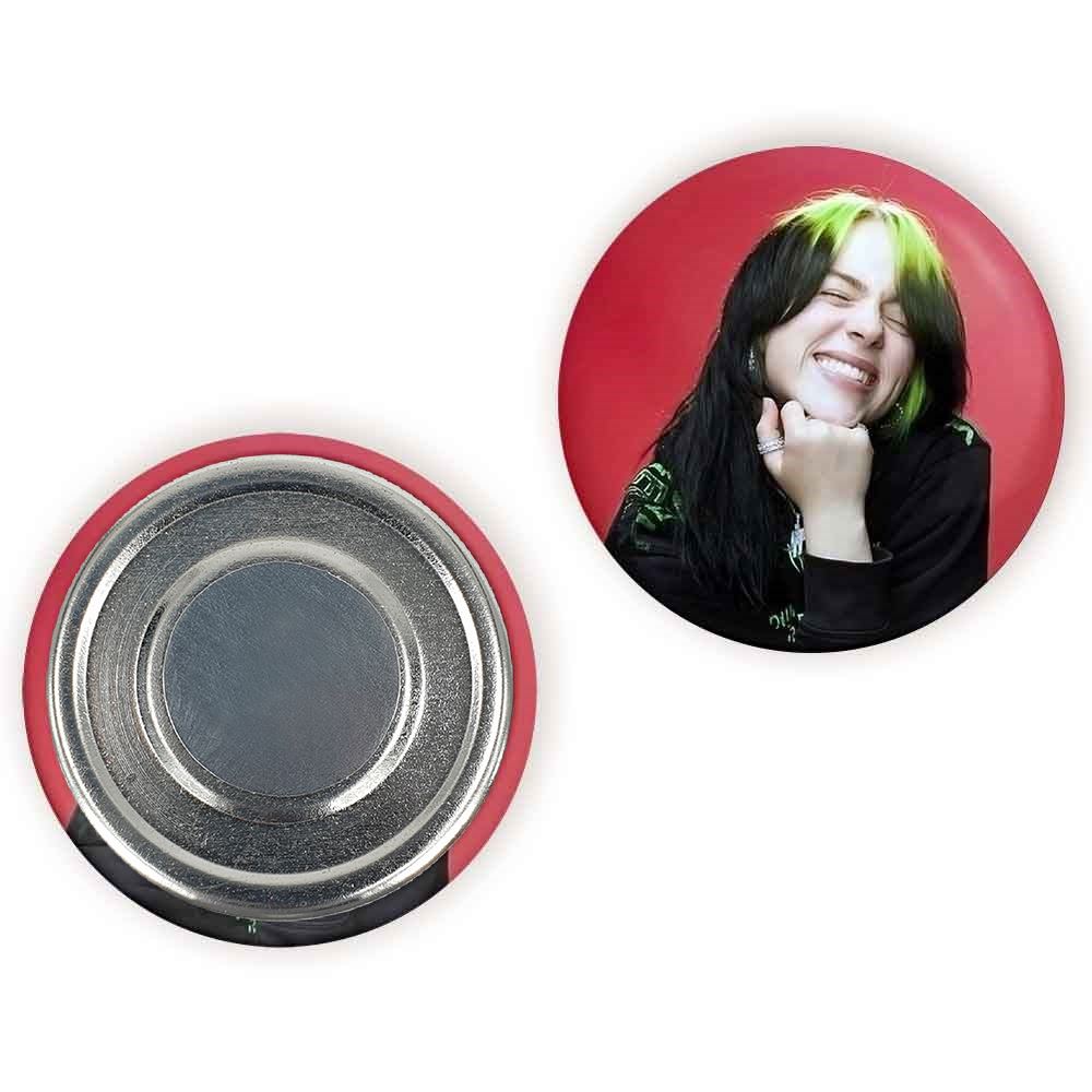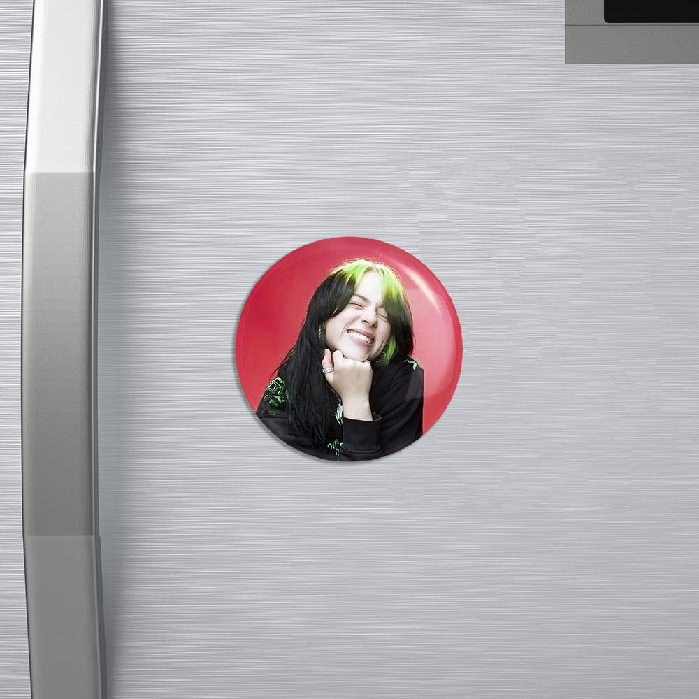 مگنت بیلی آیلیش Billie Eilish خندالو با روکش سلفون مات مخملی ضدخش و قطعه پشتی فلزی تولید شده است که آهنربای اتمی بکار برده شده در محصول، بصورت مخفی تعبیه شده ودیده نمی شود. ضمن اینکه گیرایی بسیار بالایی داشته و به هیچ عنوان از روی یخچال نمی افتد.