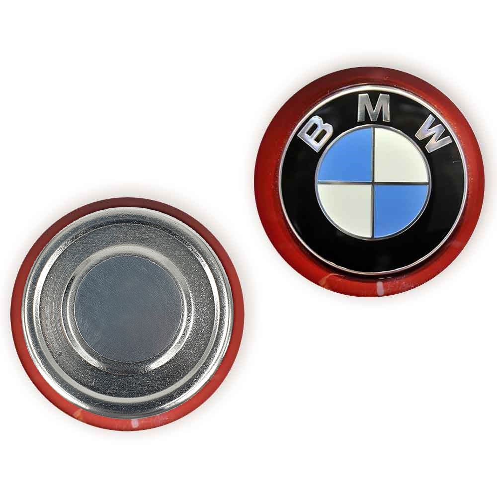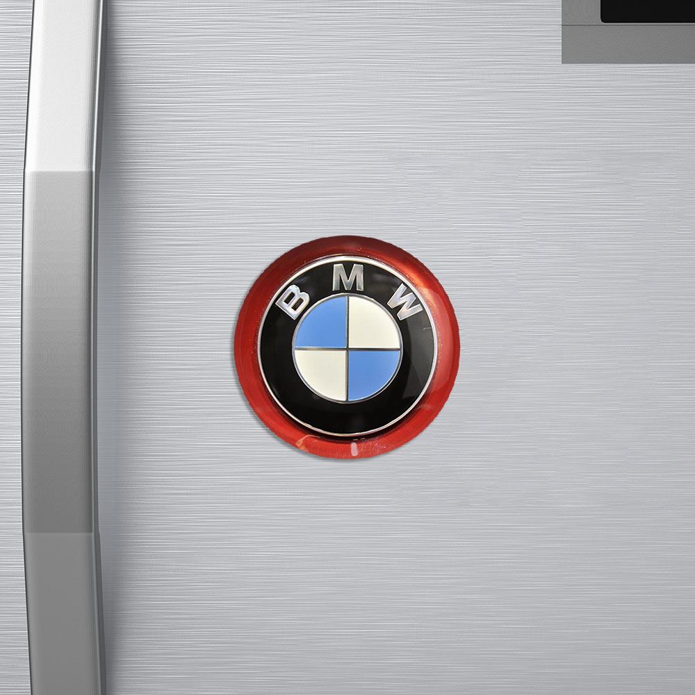 مگنت بی ام دبلیو BMW خندالو با روکش سلفون مات مخملی ضدخش و قطعه پشتی فلزی تولید شده است که آهنربای اتمی بکار برده شده در محصول، بصورت مخفی تعبیه شده ودیده نمی شود. ضمن اینکه گیرایی بسیار بالایی داشته و به هیچ عنوان از روی یخچال نمی افتد.