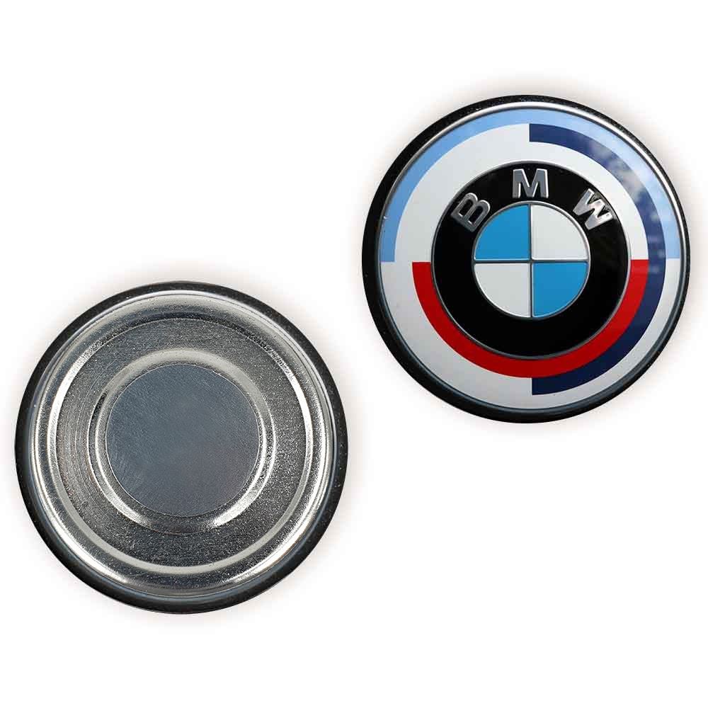 مگنت بی ام دبلیو BMW خندالو با روکش سلفون مات مخملی ضدخش و قطعه پشتی فلزی تولید شده است که آهنربای اتمی بکار برده شده در محصول، بصورت مخفی تعبیه شده ودیده نمی شود. ضمن اینکه گیرایی بسیار بالایی داشته و به هیچ عنوان از روی یخچال نمی افتد.