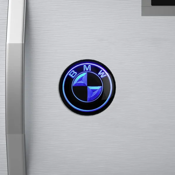 مگنت بی ام دبلیو BMW خندالو با روکش سلفون مات مخملی ضدخش و قطعه پشتی فلزی تولید شده است که آهنربای اتمی بکار برده شده در محصول، بصورت مخفی تعبیه شده ودیده نمی شود. ضمن اینکه گیرایی بسیار بالایی داشته و به هیچ عنوان از روی یخچال نمی افتد.