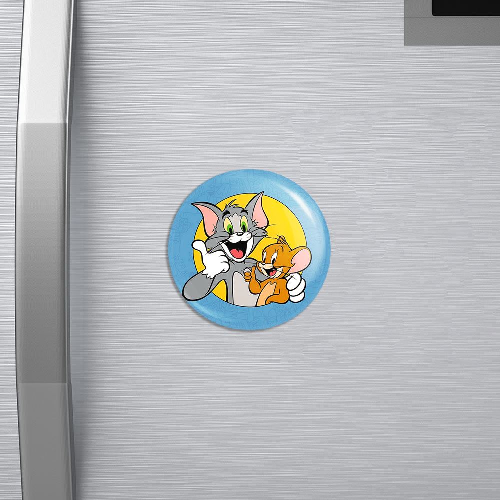 مگنت تام و جری Tom And Jerry خندالو با روکش سلفون مات مخملی ضدخش و قطعه پشتی فلزی تولید شده است که آهنربای اتمی بکار برده شده در محصول، بصورت مخفی تعبیه شده ودیده نمی شود. ضمن اینکه گیرایی بسیار بالایی داشته و به هیچ عنوان از روی یخچال نمی افتد.