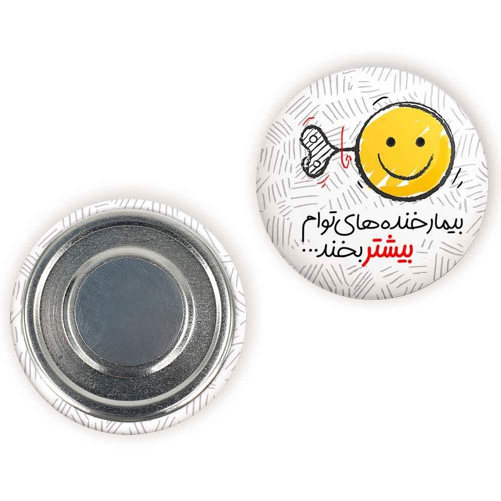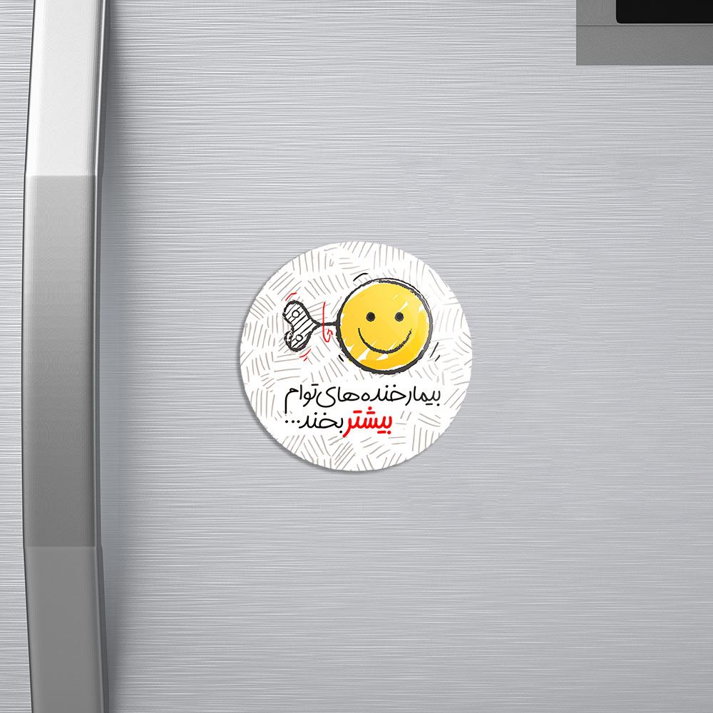 مگنت تایپوگرافی خندالو با روکش سلفون مات مخملی ضدخش و قطعه پشتی فلزی تولید شده است که آهنربای اتمی بکار برده شده در محصول، بصورت مخفی تعبیه شده ودیده نمی شود. ضمن اینکه گیرایی بسیار بالایی داشته و به هیچ عنوان از روی یخچال نمی افتد.