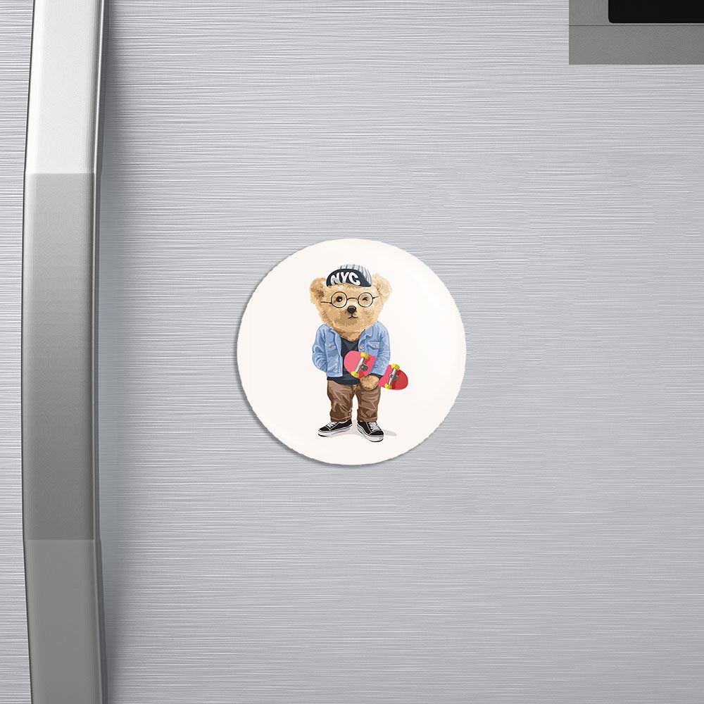 مگنت تدی Teddy خندالو با روکش سلفون مات مخملی ضدخش و قطعه پشتی فلزی تولید شده است که آهنربای اتمی بکار برده شده در محصول، بصورت مخفی تعبیه شده ودیده نمی شود. ضمن اینکه گیرایی بسیار بالایی داشته و به هیچ عنوان از روی یخچال نمی افتد.
