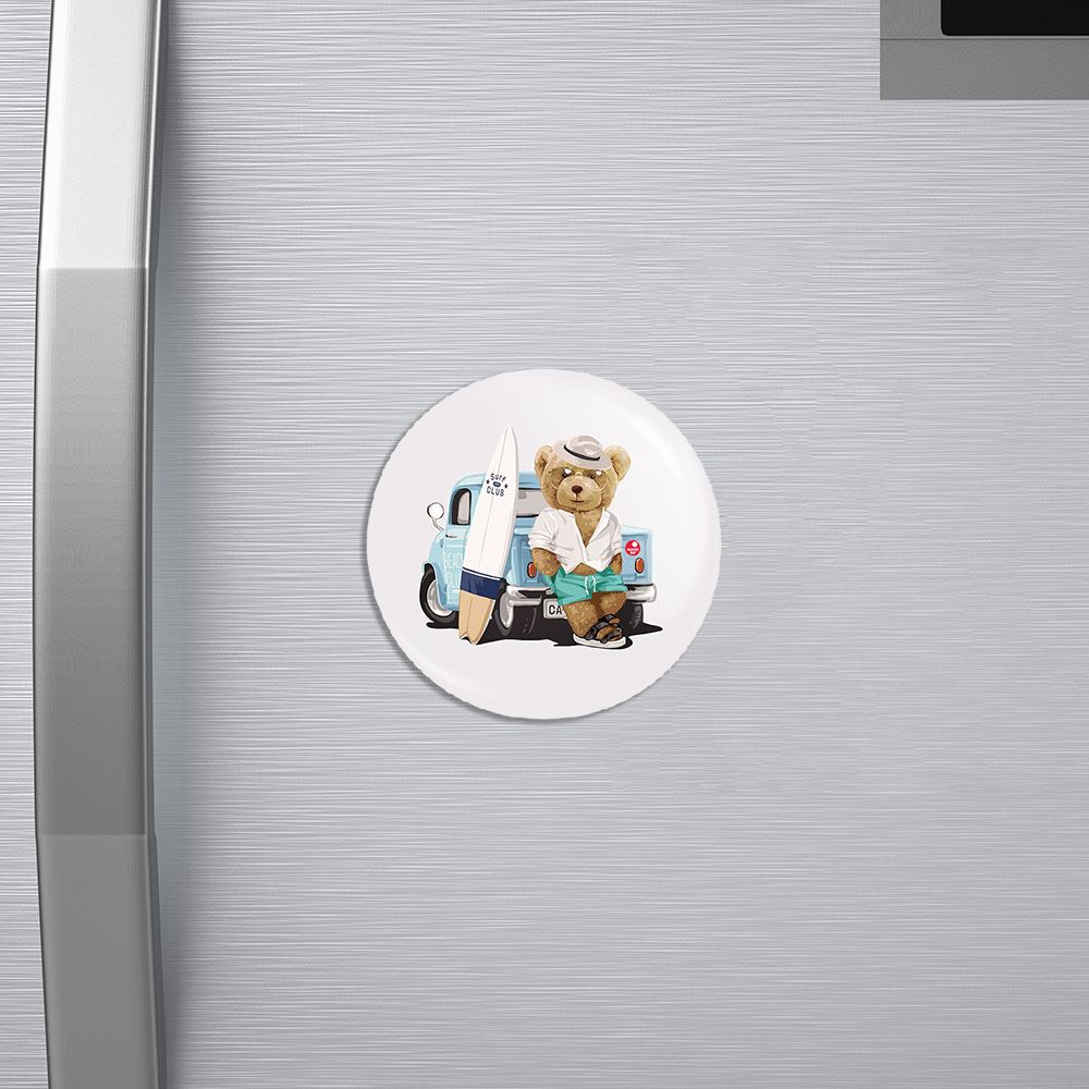 مگنت تدی Teddy خندالو با روکش سلفون مات مخملی ضدخش و قطعه پشتی فلزی تولید شده است که آهنربای اتمی بکار برده شده در محصول، بصورت مخفی تعبیه شده ودیده نمی شود. ضمن اینکه گیرایی بسیار بالایی داشته و به هیچ عنوان از روی یخچال نمی افتد.