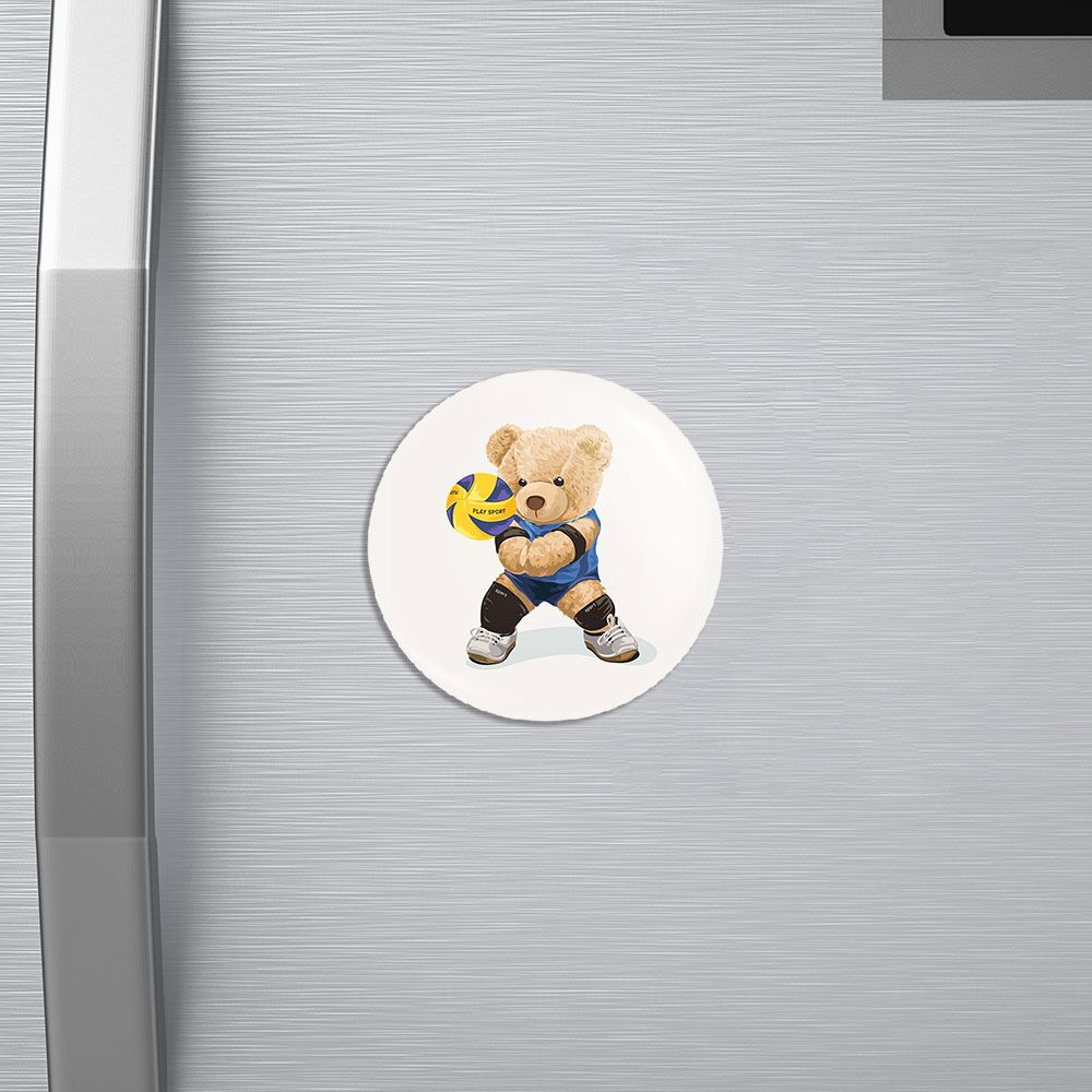 مگنت تدی Teddy خندالو با روکش سلفون مات مخملی ضدخش و قطعه پشتی فلزی تولید شده است که آهنربای اتمی بکار برده شده در محصول، بصورت مخفی تعبیه شده ودیده نمی شود. ضمن اینکه گیرایی بسیار بالایی داشته و به هیچ عنوان از روی یخچال نمی افتد.