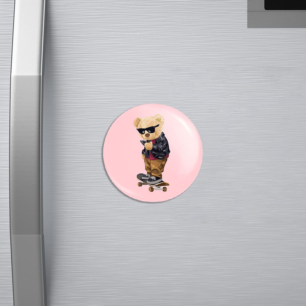 مگنت تدی Teddy خندالو با روکش سلفون مات مخملی ضدخش و قطعه پشتی فلزی تولید شده است که آهنربای اتمی بکار برده شده در محصول، بصورت مخفی تعبیه شده ودیده نمی شود. ضمن اینکه گیرایی بسیار بالایی داشته و به هیچ عنوان از روی یخچال نمی افتد.