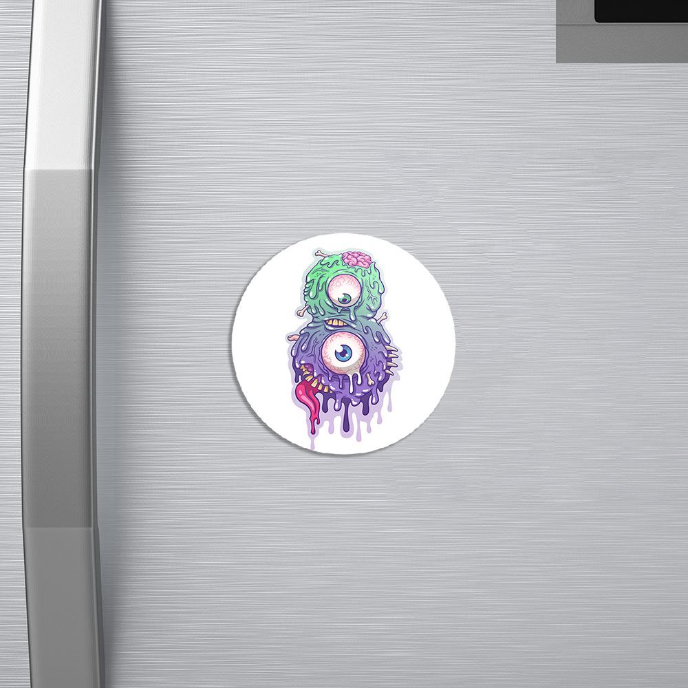 مگنت ترسناک خندالو با روکش سلفون مات مخملی ضدخش و قطعه پشتی فلزی تولید شده است که آهنربای اتمی بکار برده شده در محصول، بصورت مخفی تعبیه شده ودیده نمی شود. ضمن اینکه گیرایی بسیار بالایی داشته و به هیچ عنوان از روی یخچال نمی افتد.