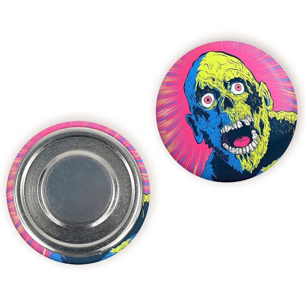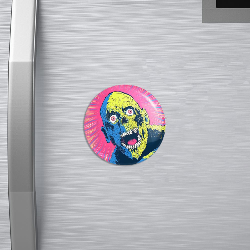 مگنت ترسناک خندالو با روکش سلفون مات مخملی ضدخش و قطعه پشتی فلزی تولید شده است که آهنربای اتمی بکار برده شده در محصول، بصورت مخفی تعبیه شده ودیده نمی شود. ضمن اینکه گیرایی بسیار بالایی داشته و به هیچ عنوان از روی یخچال نمی افتد.