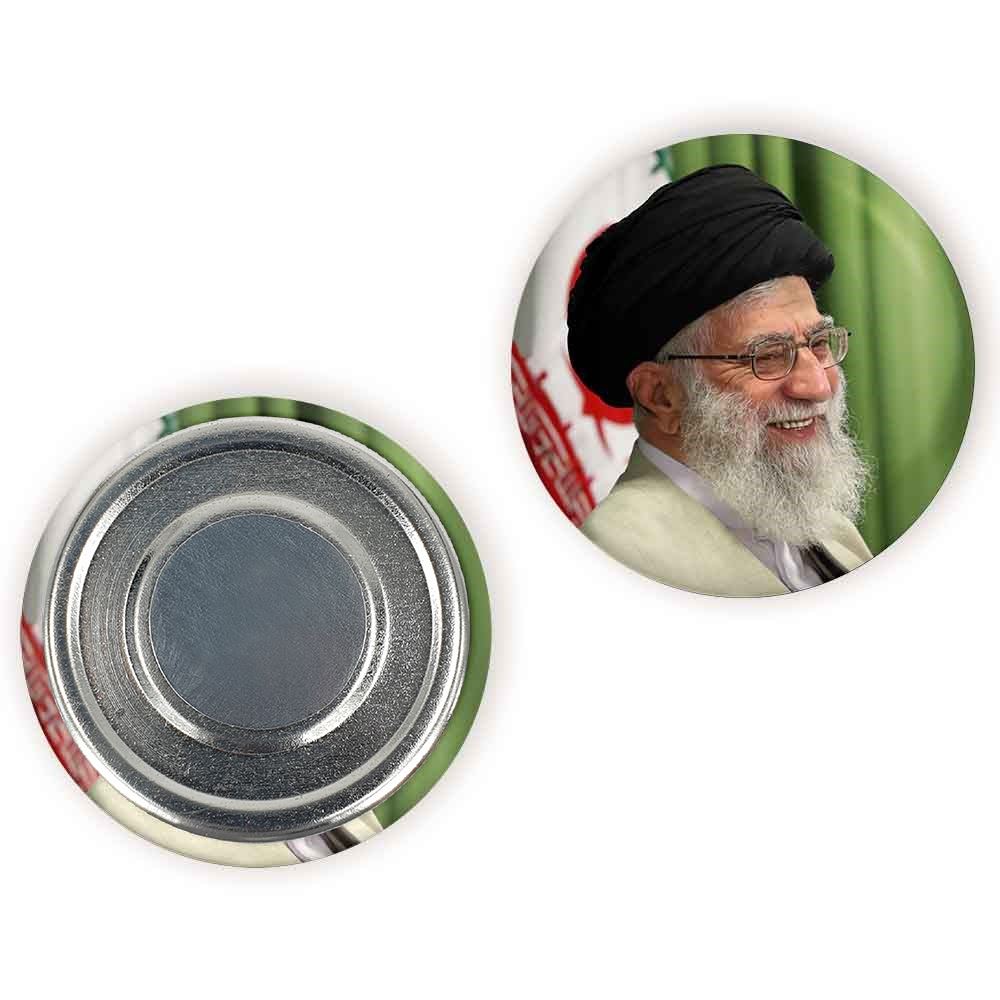 مگنت تصویر رهبر خندالو با روکش سلفون مات مخملی ضدخش و قطعه پشتی فلزی تولید شده است که آهنربای اتمی بکار برده شده در محصول، بصورت مخفی تعبیه شده ودیده نمی شود. ضمن اینکه گیرایی بسیار بالایی داشته و به هیچ عنوان از روی یخچال نمی افتد.