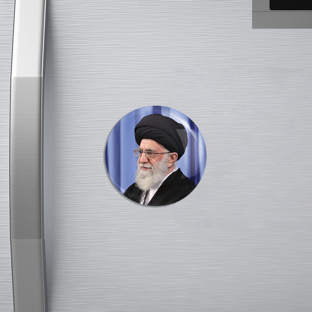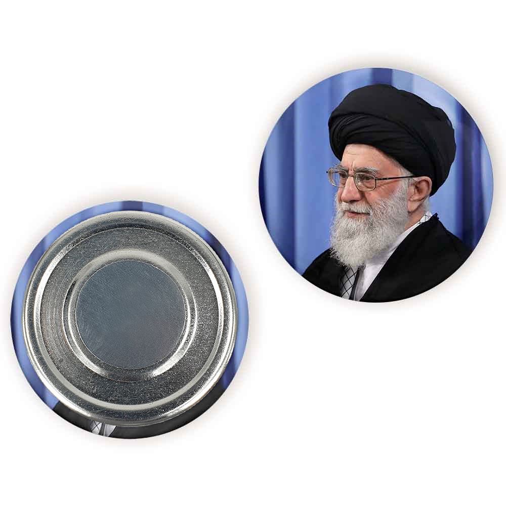 مگنت تصویر رهبر خندالو با روکش سلفون مات مخملی ضدخش و قطعه پشتی فلزی تولید شده است که آهنربای اتمی بکار برده شده در محصول، بصورت مخفی تعبیه شده ودیده نمی شود. ضمن اینکه گیرایی بسیار بالایی داشته و به هیچ عنوان از روی یخچال نمی افتد.
