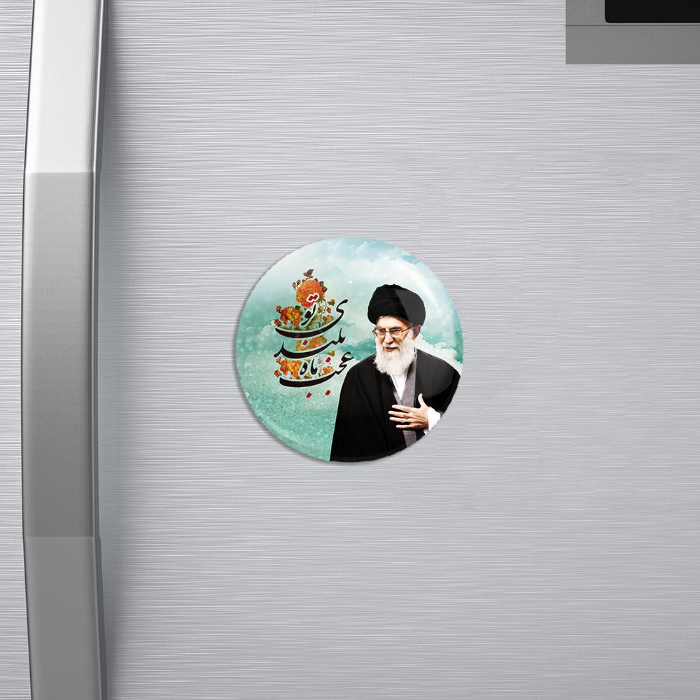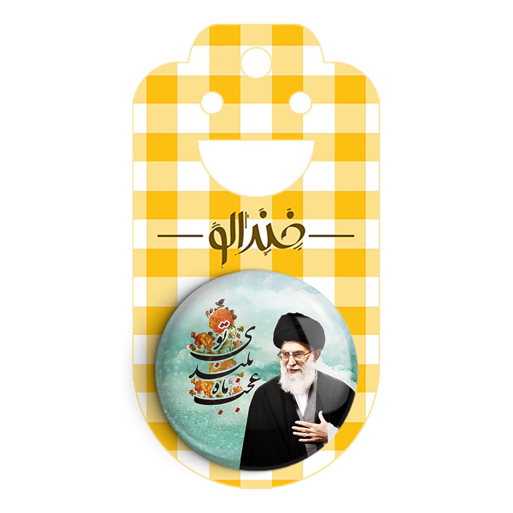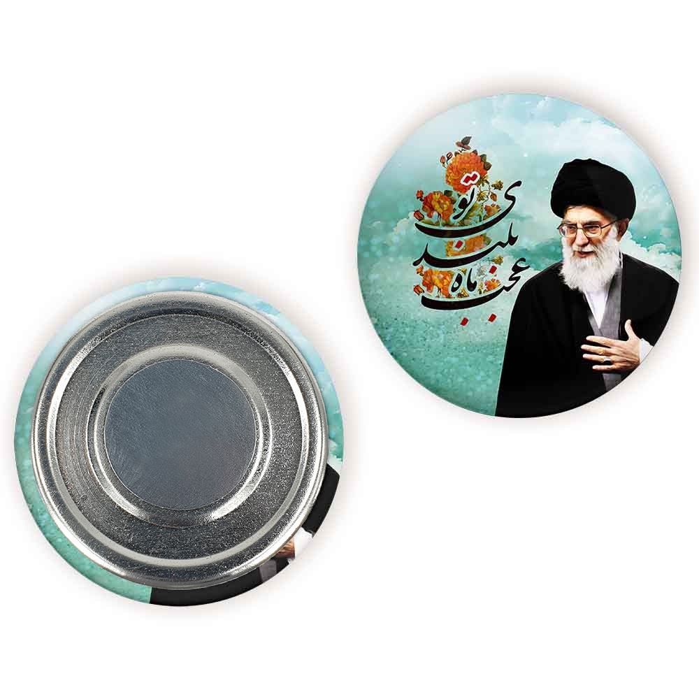 مگنت تصویر رهبر خندالو با روکش سلفون مات مخملی ضدخش و قطعه پشتی فلزی تولید شده است که آهنربای اتمی بکار برده شده در محصول، بصورت مخفی تعبیه شده ودیده نمی شود. ضمن اینکه گیرایی بسیار بالایی داشته و به هیچ عنوان از روی یخچال نمی افتد.
