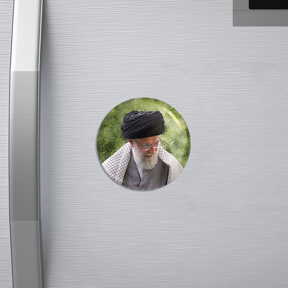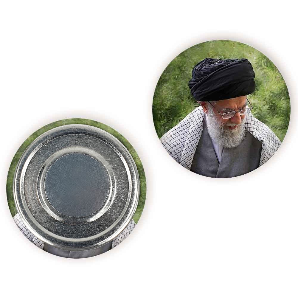 مگنت تصویر رهبر خندالو با روکش سلفون مات مخملی ضدخش و قطعه پشتی فلزی تولید شده است که آهنربای اتمی بکار برده شده در محصول، بصورت مخفی تعبیه شده ودیده نمی شود. ضمن اینکه گیرایی بسیار بالایی داشته و به هیچ عنوان از روی یخچال نمی افتد.