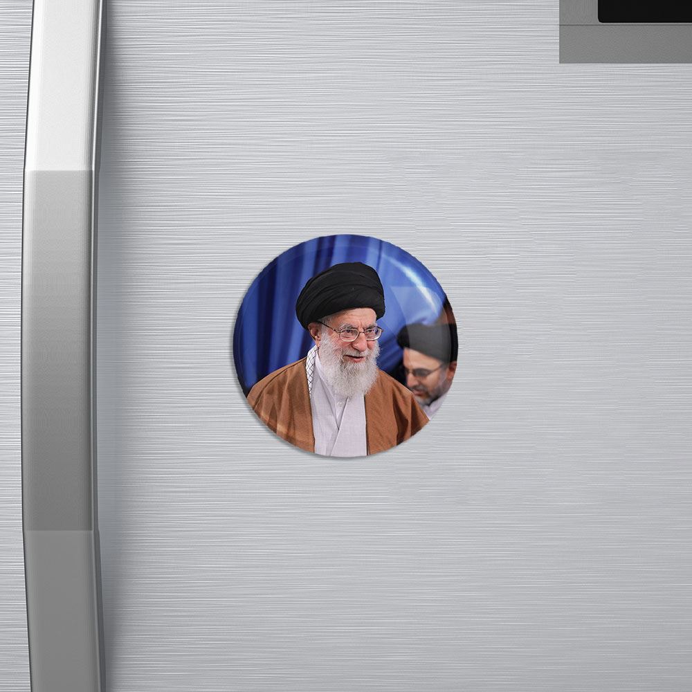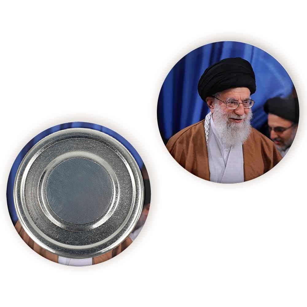 مگنت تصویر رهبر خندالو با روکش سلفون مات مخملی ضدخش و قطعه پشتی فلزی تولید شده است که آهنربای اتمی بکار برده شده در محصول، بصورت مخفی تعبیه شده ودیده نمی شود. ضمن اینکه گیرایی بسیار بالایی داشته و به هیچ عنوان از روی یخچال نمی افتد.