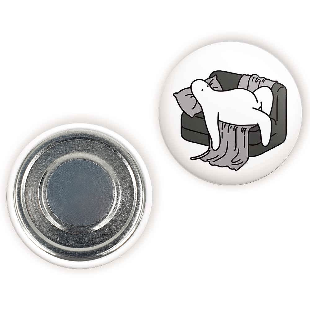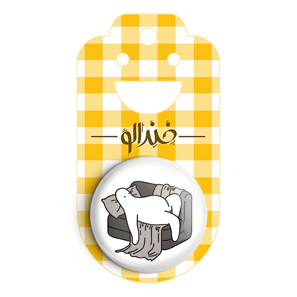 مگنت تنبل خسته خندالو با روکش سلفون مات مخملی ضدخش و قطعه پشتی فلزی تولید شده است که آهنربای اتمی بکار برده شده در محصول، بصورت مخفی تعبیه شده ودیده نمی شود. ضمن اینکه گیرایی بسیار بالایی داشته و به هیچ عنوان از روی یخچال نمی افتد.