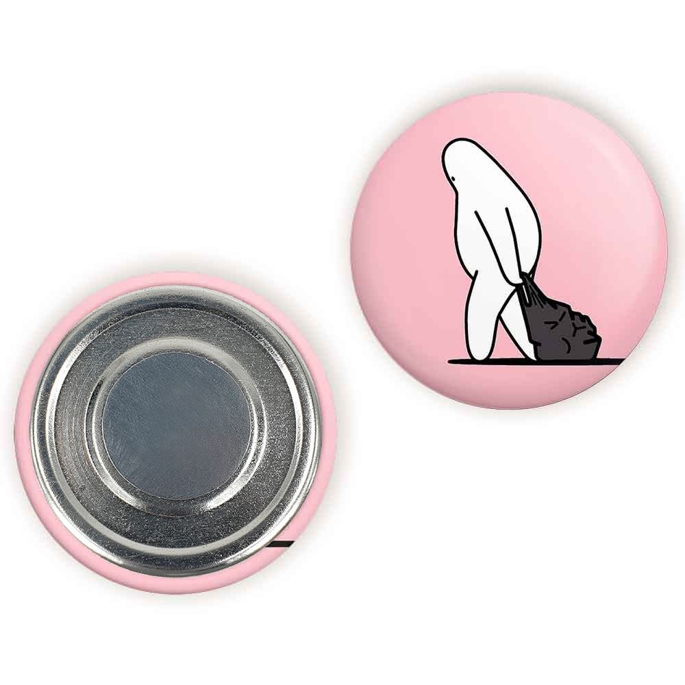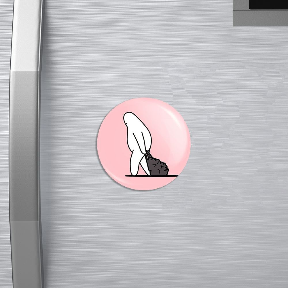 مگنت تنبل خسته خندالو با روکش سلفون مات مخملی ضدخش و قطعه پشتی فلزی تولید شده است که آهنربای اتمی بکار برده شده در محصول، بصورت مخفی تعبیه شده ودیده نمی شود. ضمن اینکه گیرایی بسیار بالایی داشته و به هیچ عنوان از روی یخچال نمی افتد.