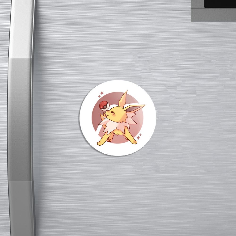مگنت تندرز انیمه پوکمون خندالو با روکش سلفون مات مخملی ضدخش و قطعه پشتی فلزی تولید شده است که آهنربای اتمی بکار برده شده در محصول، بصورت مخفی تعبیه شده ودیده نمی شود. ضمن اینکه گیرایی بسیار بالایی داشته و به هیچ عنوان از روی یخچال نمی افتد.