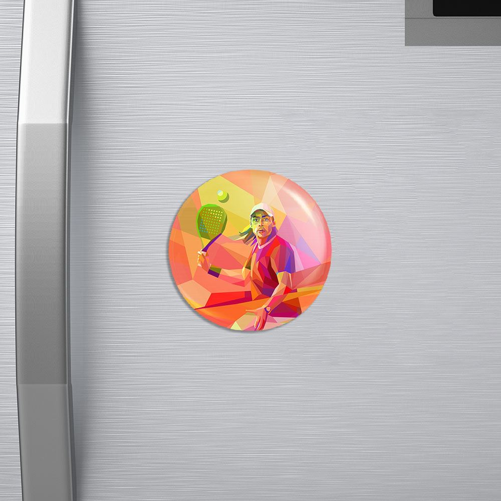 مگنت تنیس Tennis خندالو با روکش سلفون مات مخملی ضدخش و قطعه پشتی فلزی تولید شده است که آهنربای اتمی بکار برده شده در محصول، بصورت مخفی تعبیه شده ودیده نمی شود. ضمن اینکه گیرایی بسیار بالایی داشته و به هیچ عنوان از روی یخچال نمی افتد.