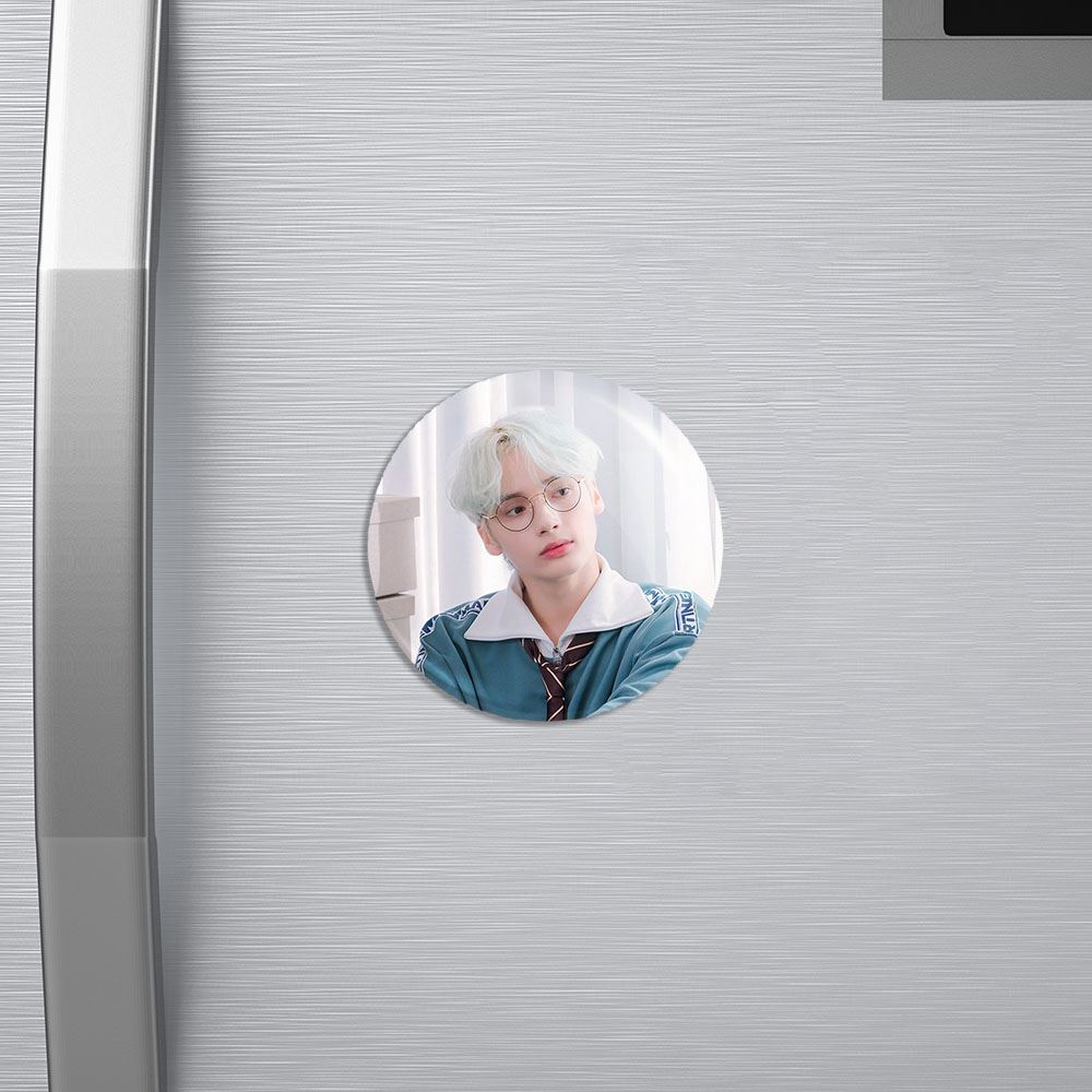 مگنت تهیون گروه تی اکس تی TXT خندالو با روکش سلفون مات مخملی ضدخش و قطعه پشتی فلزی تولید شده است که آهنربای اتمی بکار برده شده در محصول، بصورت مخفی تعبیه شده ودیده نمی شود. ضمن اینکه گیرایی بسیار بالایی داشته و به هیچ عنوان از روی یخچال نمی افتد.