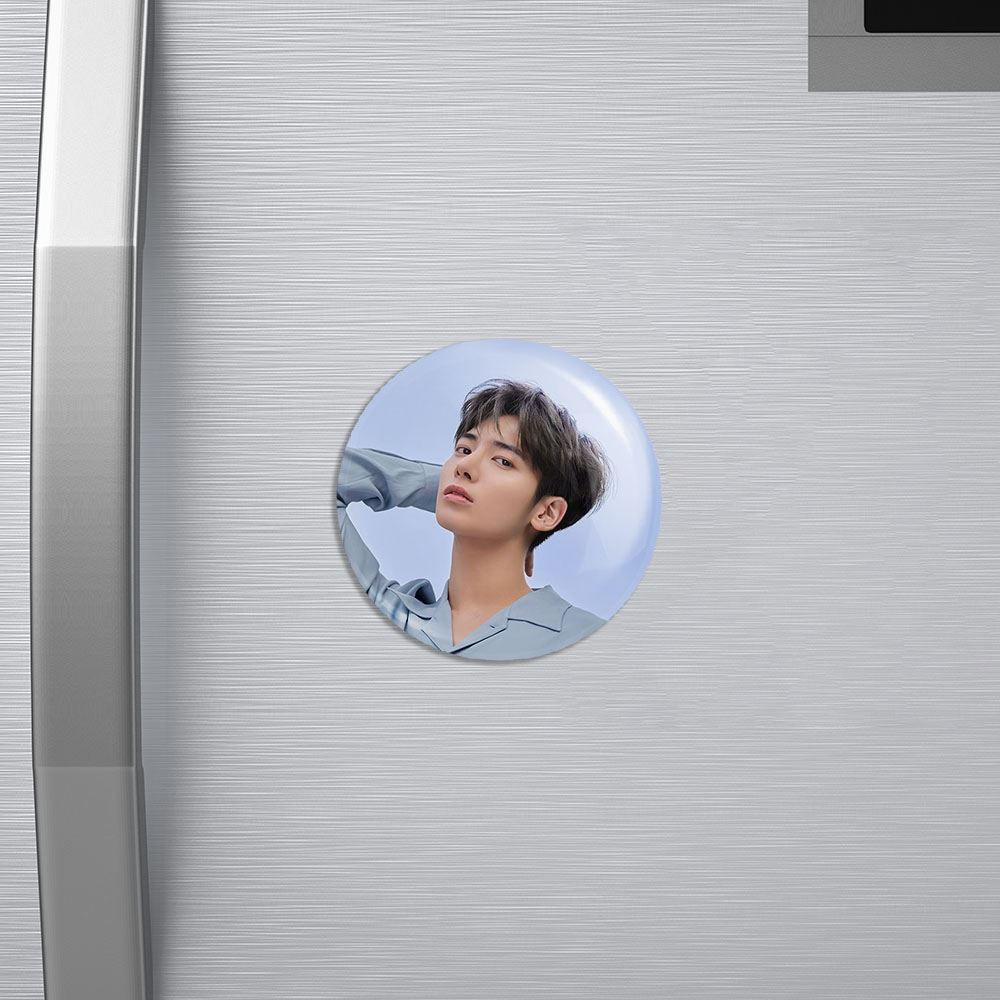مگنت تهیون گروه تی اکس تی TXT خندالو با روکش سلفون مات مخملی ضدخش و قطعه پشتی فلزی تولید شده است که آهنربای اتمی بکار برده شده در محصول، بصورت مخفی تعبیه شده ودیده نمی شود. ضمن اینکه گیرایی بسیار بالایی داشته و به هیچ عنوان از روی یخچال نمی افتد.