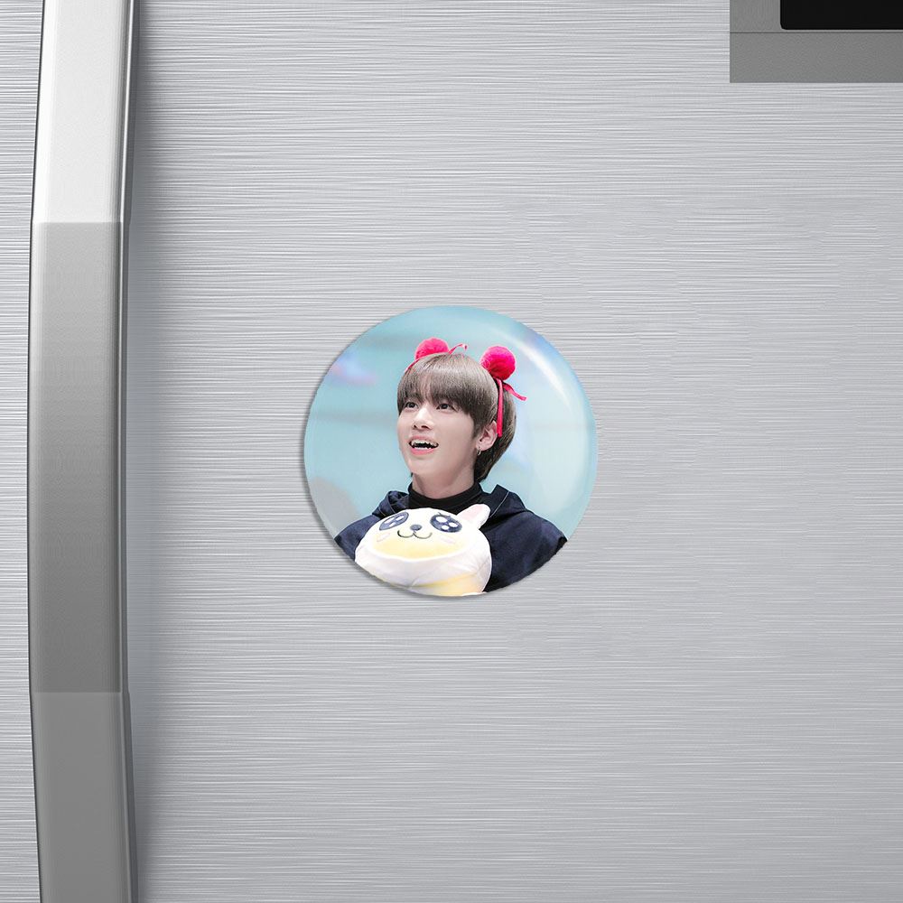 مگنت تهیون گروه تی اکس تی TXT خندالو با روکش سلفون مات مخملی ضدخش و قطعه پشتی فلزی تولید شده است که آهنربای اتمی بکار برده شده در محصول، بصورت مخفی تعبیه شده ودیده نمی شود. ضمن اینکه گیرایی بسیار بالایی داشته و به هیچ عنوان از روی یخچال نمی افتد.