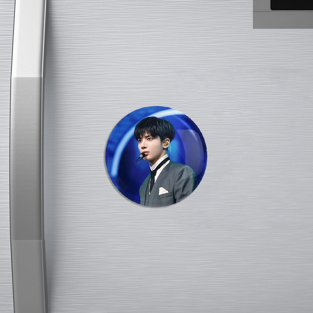 مگنت تهیون گروه تی اکس تی TXT خندالو با روکش سلفون مات مخملی ضدخش و قطعه پشتی فلزی تولید شده است که آهنربای اتمی بکار برده شده در محصول، بصورت مخفی تعبیه شده ودیده نمی شود. ضمن اینکه گیرایی بسیار بالایی داشته و به هیچ عنوان از روی یخچال نمی افتد.