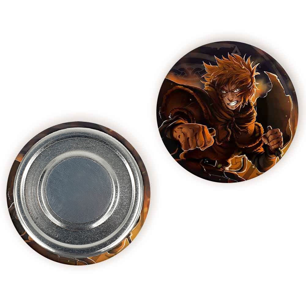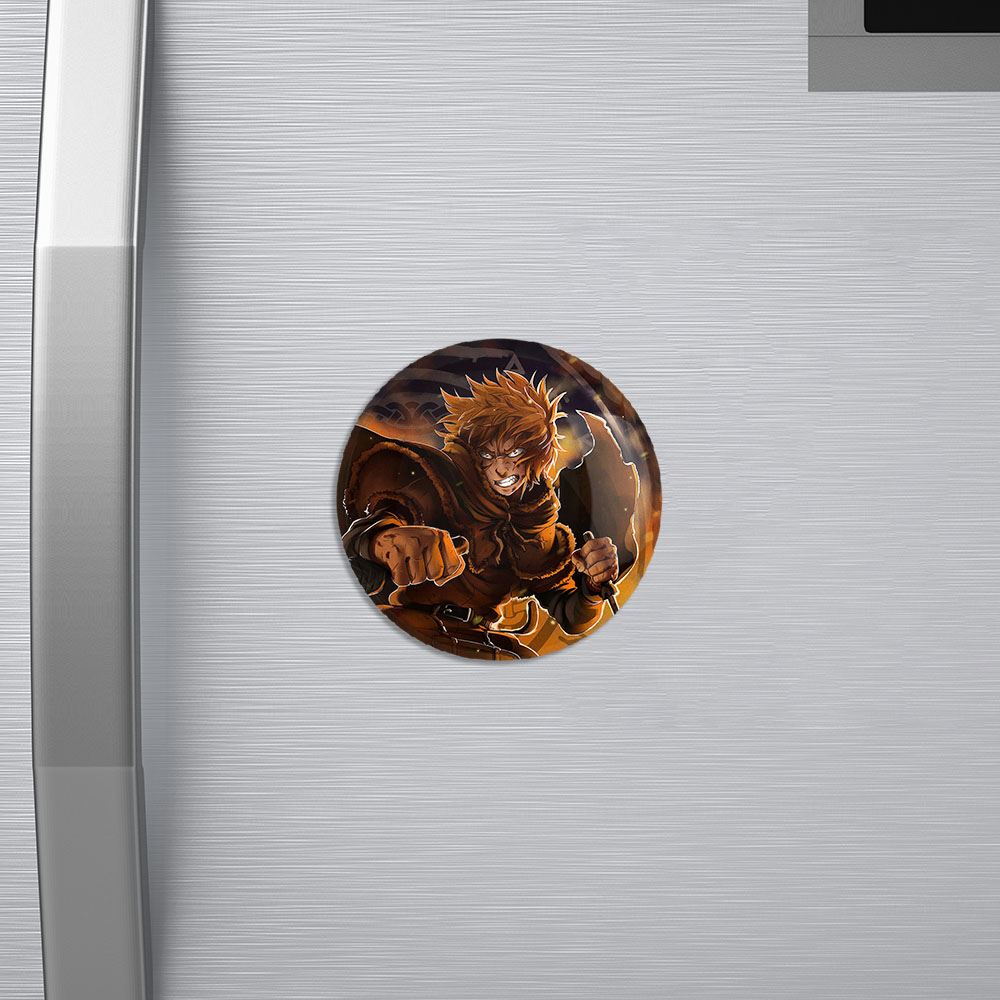 مگنت تورفین انیمه حماسه وینلند Vinland Saga خندالو با روکش سلفون مات مخملی ضدخش و قطعه پشتی فلزی تولید شده است که آهنربای اتمی بکار برده شده در محصول، بصورت مخفی تعبیه شده ودیده نمی شود. ضمن اینکه گیرایی بسیار بالایی داشته و به هیچ عنوان از روی یخچال نمی افتد.