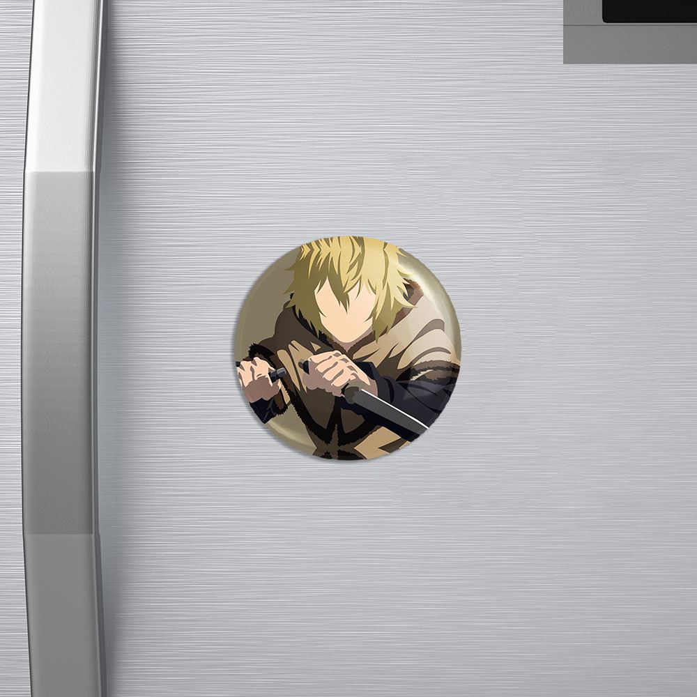 مگنت تورفین انیمه حماسه وینلند Vinland Saga خندالو با روکش سلفون مات مخملی ضدخش و قطعه پشتی فلزی تولید شده است که آهنربای اتمی بکار برده شده در محصول، بصورت مخفی تعبیه شده ودیده نمی شود. ضمن اینکه گیرایی بسیار بالایی داشته و به هیچ عنوان از روی یخچال نمی افتد.