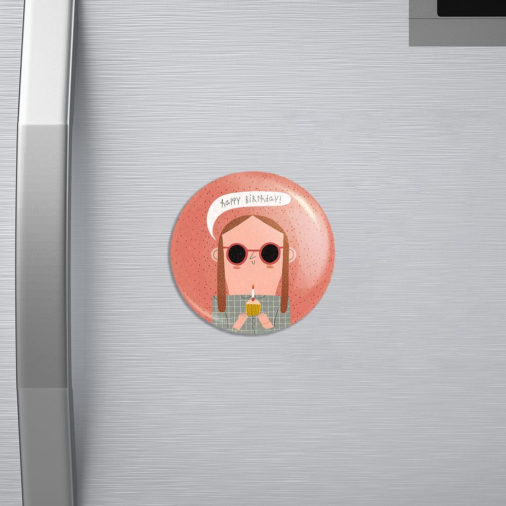 مگنت تولد خندالو با روکش سلفون مات مخملی ضدخش و قطعه پشتی فلزی تولید شده است که آهنربای اتمی بکار برده شده در محصول، بصورت مخفی تعبیه شده ودیده نمی شود. ضمن اینکه گیرایی بسیار بالایی داشته و به هیچ عنوان از روی یخچال نمی افتد.