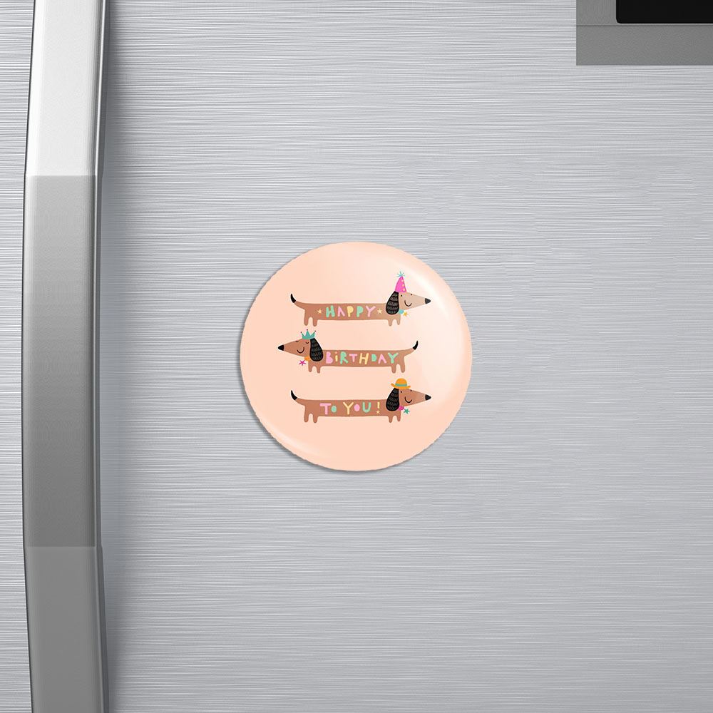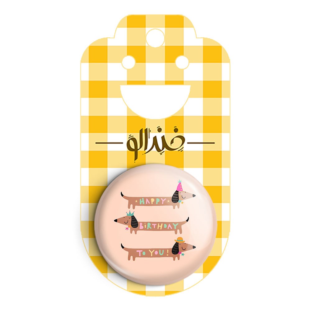 مگنت تولد خندالو با روکش سلفون مات مخملی ضدخش و قطعه پشتی فلزی تولید شده است که آهنربای اتمی بکار برده شده در محصول، بصورت مخفی تعبیه شده ودیده نمی شود. ضمن اینکه گیرایی بسیار بالایی داشته و به هیچ عنوان از روی یخچال نمی افتد.