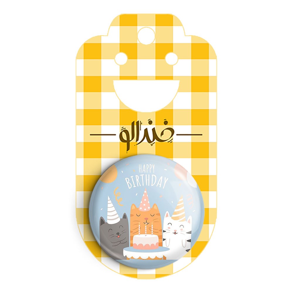 مگنت تولد خندالو با روکش سلفون مات مخملی ضدخش و قطعه پشتی فلزی تولید شده است که آهنربای اتمی بکار برده شده در محصول، بصورت مخفی تعبیه شده ودیده نمی شود. ضمن اینکه گیرایی بسیار بالایی داشته و به هیچ عنوان از روی یخچال نمی افتد.