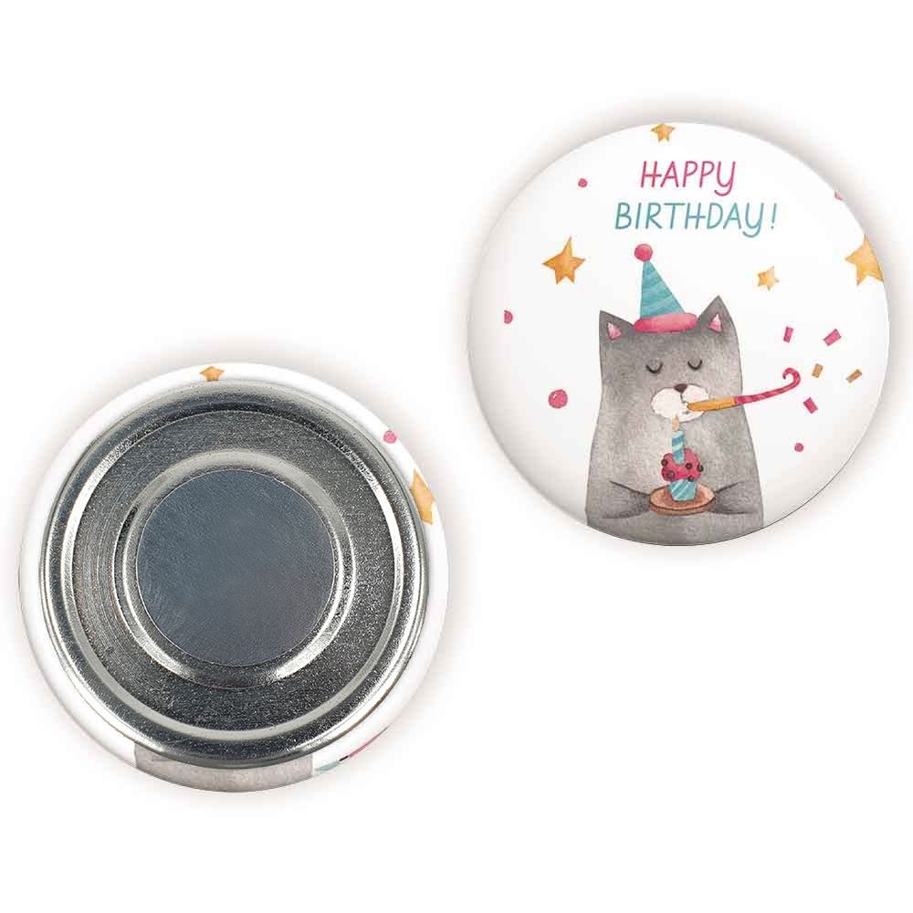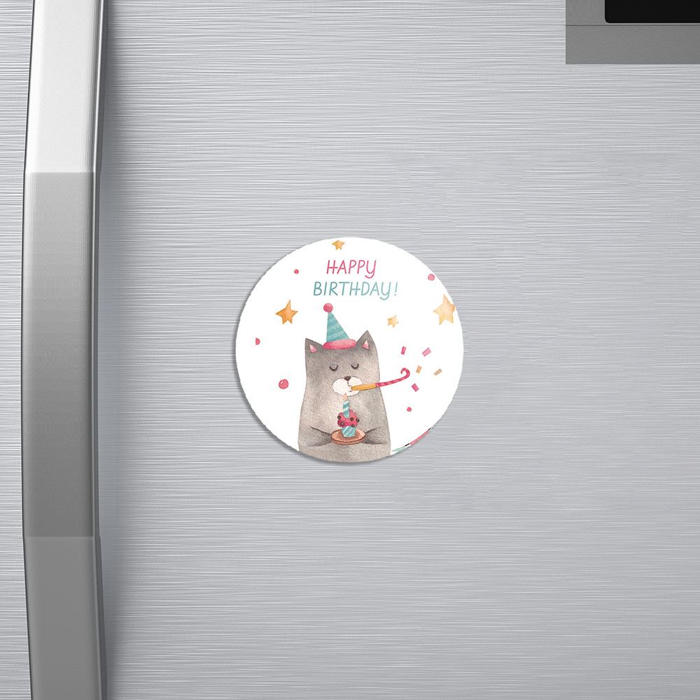 مگنت تولد خندالو با روکش سلفون مات مخملی ضدخش و قطعه پشتی فلزی تولید شده است که آهنربای اتمی بکار برده شده در محصول، بصورت مخفی تعبیه شده ودیده نمی شود. ضمن اینکه گیرایی بسیار بالایی داشته و به هیچ عنوان از روی یخچال نمی افتد.