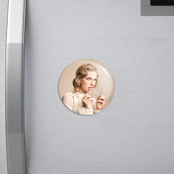 مگنت تیلور سوئیفت Taylor Swift خندالو با روکش سلفون مات مخملی ضدخش و قطعه پشتی فلزی تولید شده است که آهنربای اتمی بکار برده شده در محصول، بصورت مخفی تعبیه شده ودیده نمی شود. ضمن اینکه گیرایی بسیار بالایی داشته و به هیچ عنوان از روی یخچال نمی افتد.