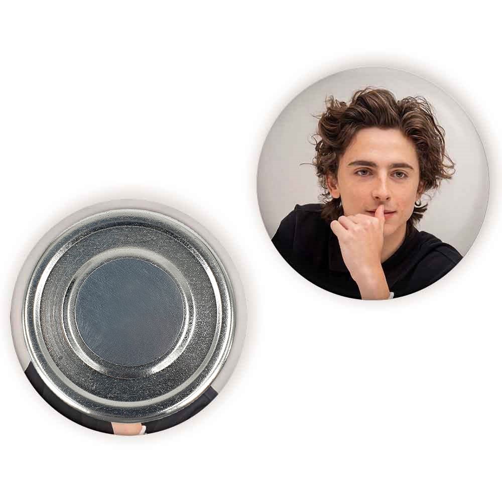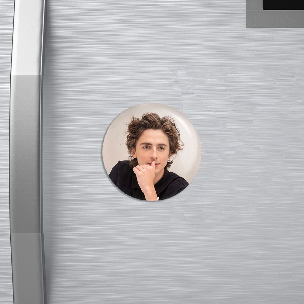 مگنت تیموتی شالامی Timothée Chalamet خندالو با روکش سلفون مات مخملی ضدخش و قطعه پشتی فلزی تولید شده است که آهنربای اتمی بکار برده شده در محصول، بصورت مخفی تعبیه شده ودیده نمی شود. ضمن اینکه گیرایی بسیار بالایی داشته و به هیچ عنوان از روی یخچال نمی افتد.