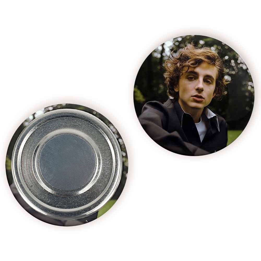 مگنت تیموتی شالامی Timothée Chalamet خندالو با روکش سلفون مات مخملی ضدخش و قطعه پشتی فلزی تولید شده است که آهنربای اتمی بکار برده شده در محصول، بصورت مخفی تعبیه شده ودیده نمی شود. ضمن اینکه گیرایی بسیار بالایی داشته و به هیچ عنوان از روی یخچال نمی افتد.