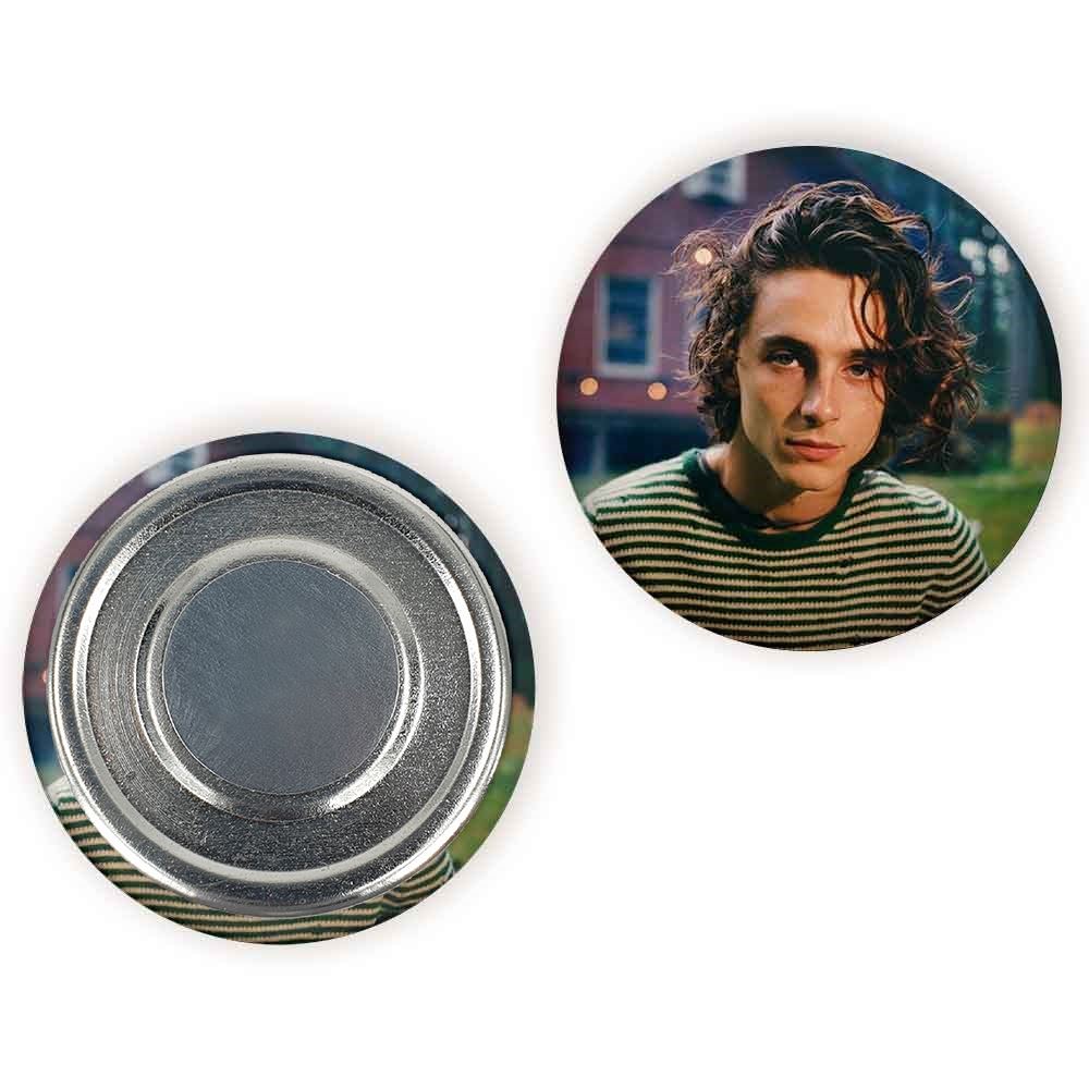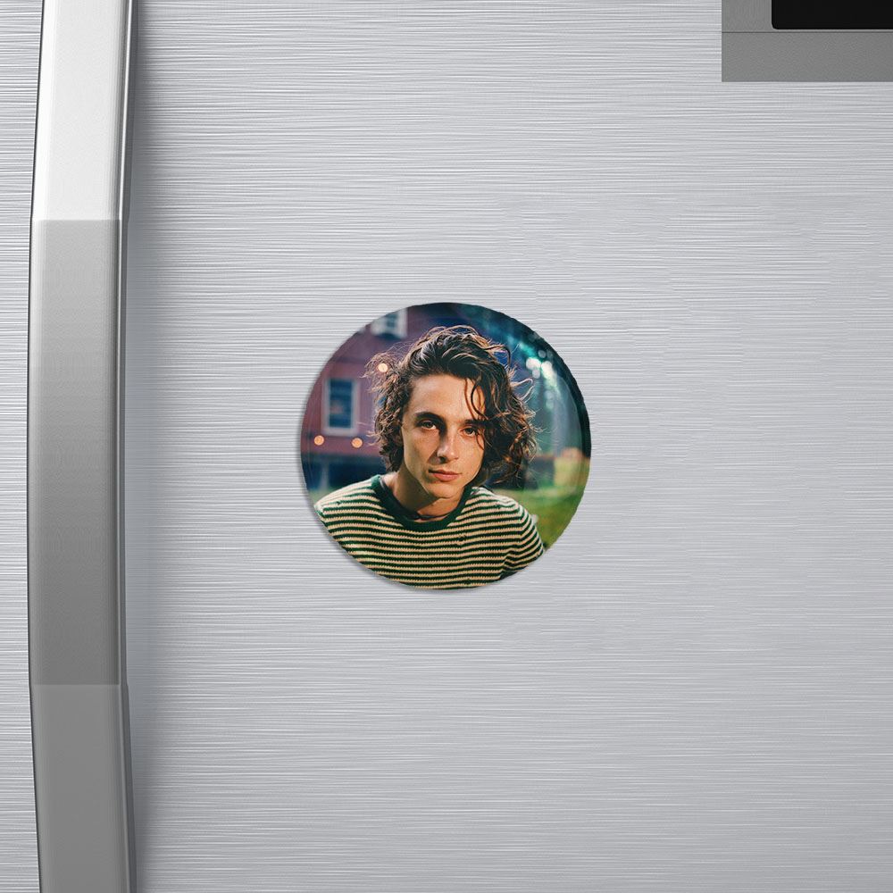 مگنت تیموتی شالامی Timothée Chalamet خندالو با روکش سلفون مات مخملی ضدخش و قطعه پشتی فلزی تولید شده است که آهنربای اتمی بکار برده شده در محصول، بصورت مخفی تعبیه شده ودیده نمی شود. ضمن اینکه گیرایی بسیار بالایی داشته و به هیچ عنوان از روی یخچال نمی افتد.