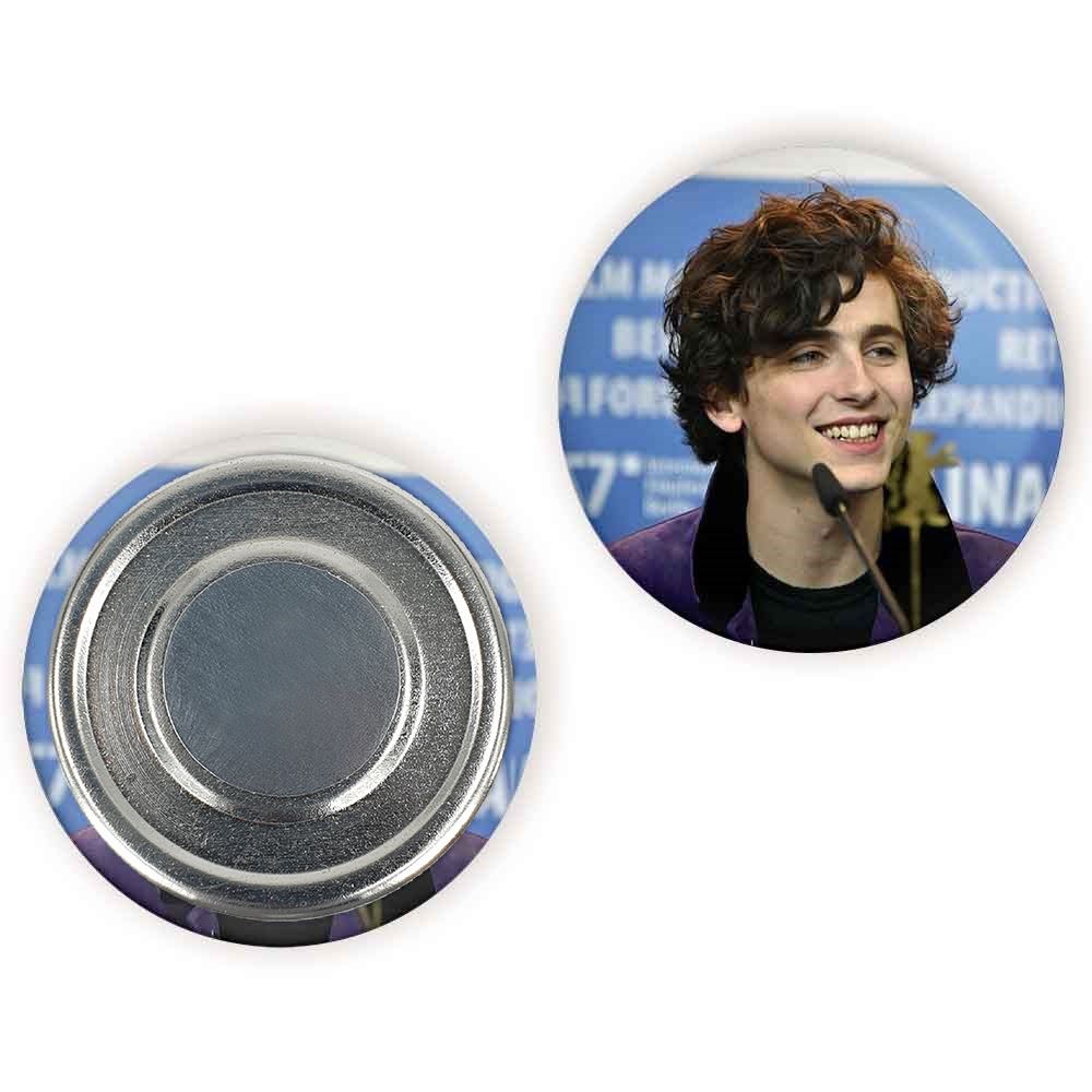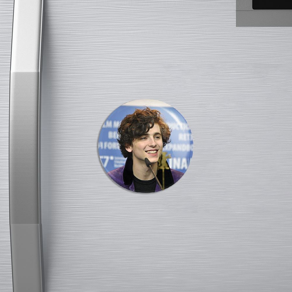 مگنت تیموتی شالامی Timothée Chalamet خندالو با روکش سلفون مات مخملی ضدخش و قطعه پشتی فلزی تولید شده است که آهنربای اتمی بکار برده شده در محصول، بصورت مخفی تعبیه شده ودیده نمی شود. ضمن اینکه گیرایی بسیار بالایی داشته و به هیچ عنوان از روی یخچال نمی افتد.