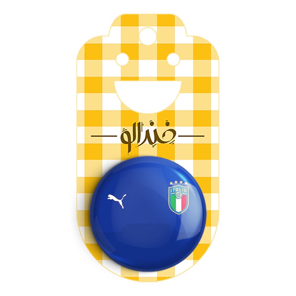 مگنت تیم ملی ایتالیا خندالو با روکش سلفون مات مخملی ضدخش و قطعه پشتی فلزی تولید شده است که آهنربای اتمی بکار برده شده در محصول، بصورت مخفی تعبیه شده ودیده نمی شود. ضمن اینکه گیرایی بسیار بالایی داشته و به هیچ عنوان از روی یخچال نمی افتد.