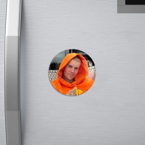 مگنت جاستین بیبر Justin Bieber خندالو با روکش سلفون مات مخملی ضدخش و قطعه پشتی فلزی تولید شده است که آهنربای اتمی بکار برده شده در محصول، بصورت مخفی تعبیه شده ودیده نمی شود. ضمن اینکه گیرایی بسیار بالایی داشته و به هیچ عنوان از روی یخچال نمی افتد.