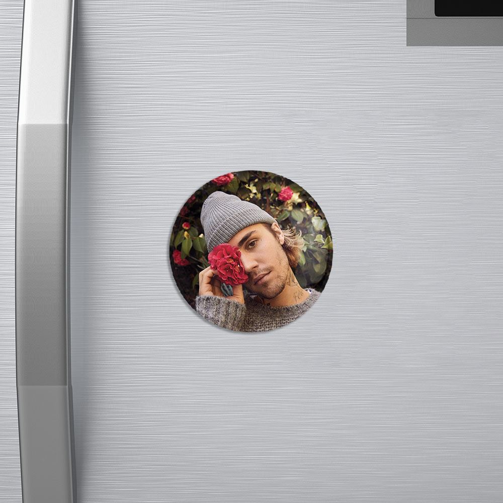 مگنت جاستین بیبر Justin Bieber خندالو با روکش سلفون مات مخملی ضدخش و قطعه پشتی فلزی تولید شده است که آهنربای اتمی بکار برده شده در محصول، بصورت مخفی تعبیه شده ودیده نمی شود. ضمن اینکه گیرایی بسیار بالایی داشته و به هیچ عنوان از روی یخچال نمی افتد.