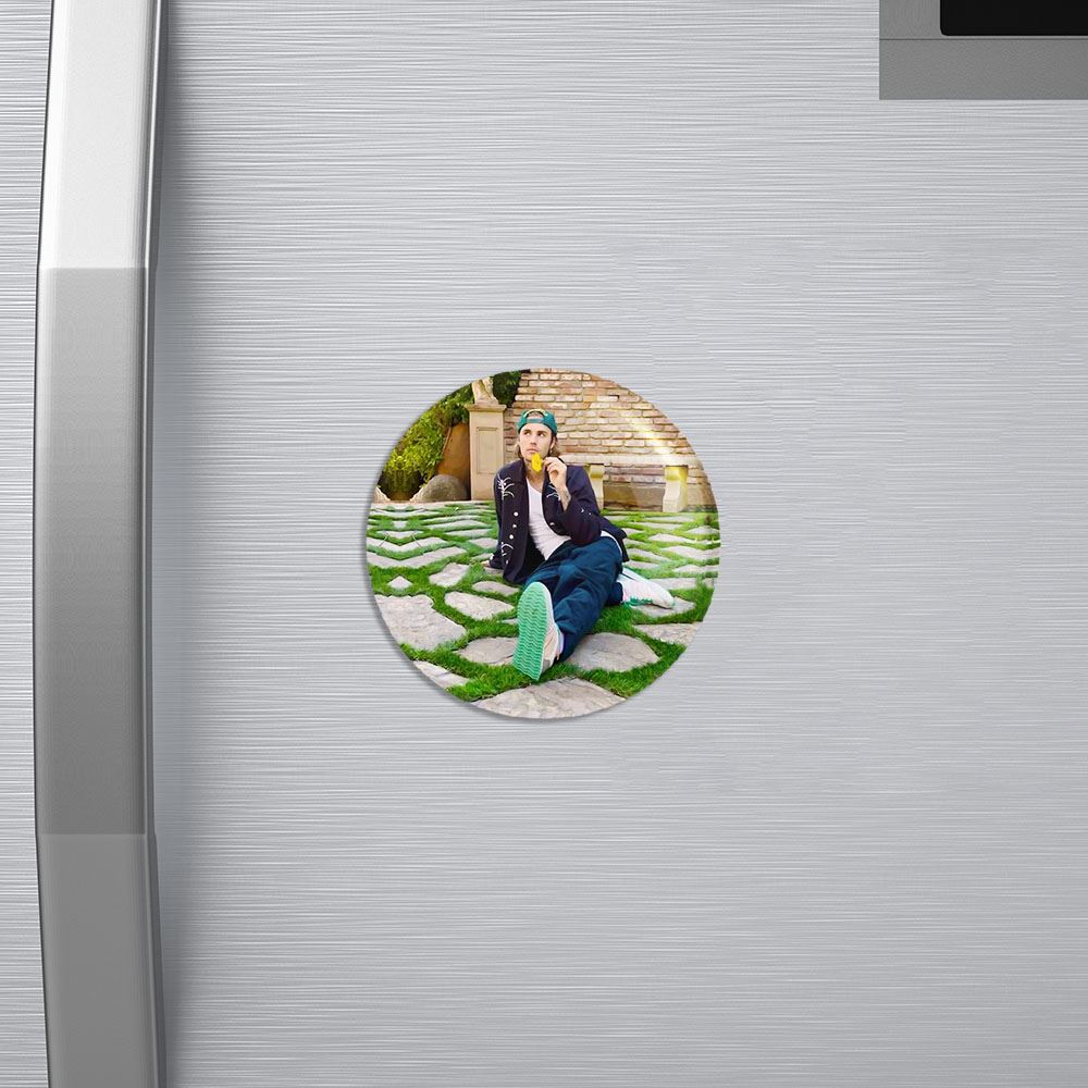 مگنت جاستین بیبر Justin Bieber خندالو با روکش سلفون مات مخملی ضدخش و قطعه پشتی فلزی تولید شده است که آهنربای اتمی بکار برده شده در محصول، بصورت مخفی تعبیه شده ودیده نمی شود. ضمن اینکه گیرایی بسیار بالایی داشته و به هیچ عنوان از روی یخچال نمی افتد.