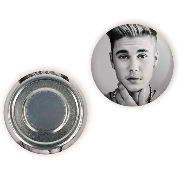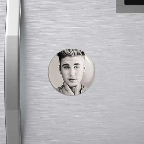 مگنت جاستین بیبر Justin Bieber خندالو با روکش سلفون مات مخملی ضدخش و قطعه پشتی فلزی تولید شده است که آهنربای اتمی بکار برده شده در محصول، بصورت مخفی تعبیه شده ودیده نمی شود. ضمن اینکه گیرایی بسیار بالایی داشته و به هیچ عنوان از روی یخچال نمی افتد.