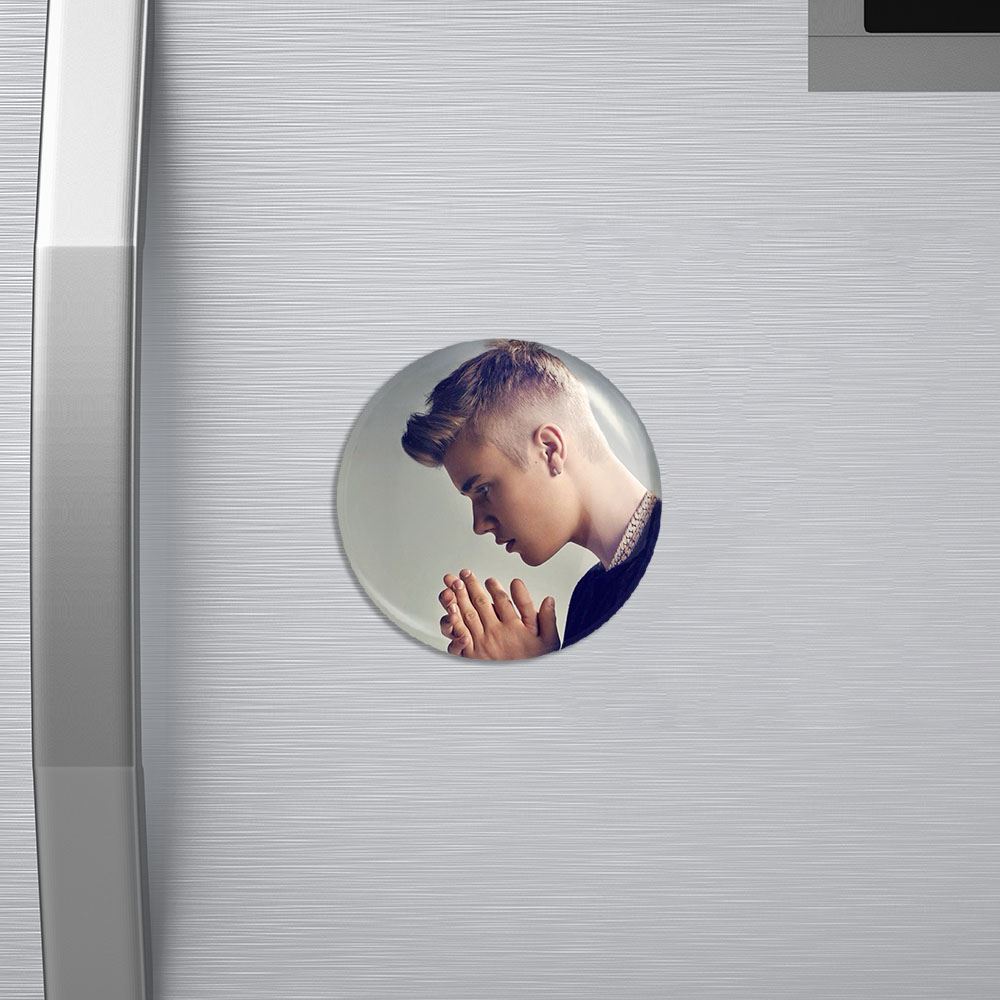 مگنت جاستین بیبر Justin Bieber خندالو با روکش سلفون مات مخملی ضدخش و قطعه پشتی فلزی تولید شده است که آهنربای اتمی بکار برده شده در محصول، بصورت مخفی تعبیه شده ودیده نمی شود. ضمن اینکه گیرایی بسیار بالایی داشته و به هیچ عنوان از روی یخچال نمی افتد.